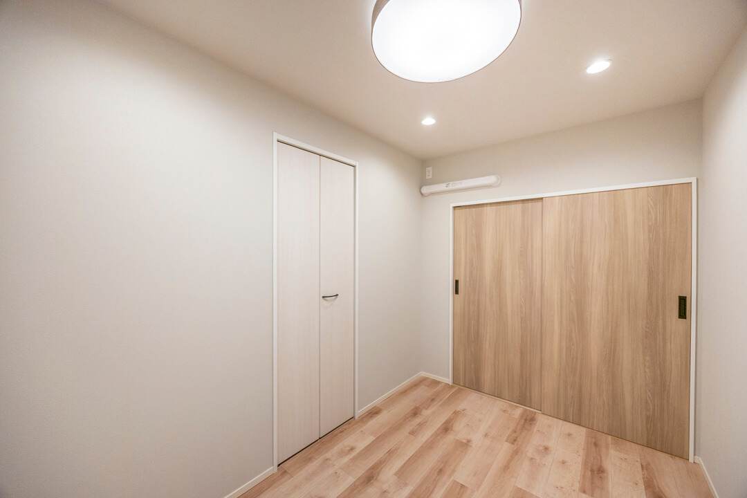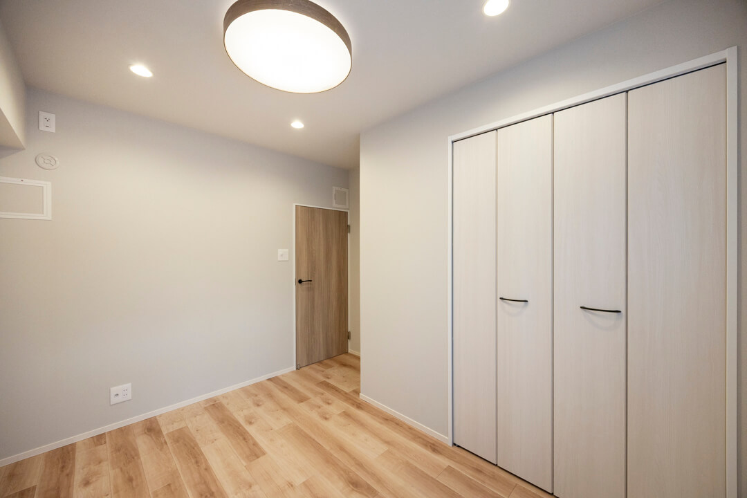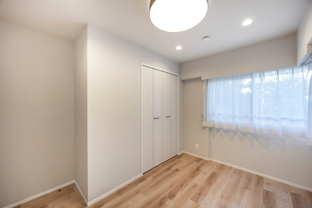 約4.6帖の寝室2は、子ども部屋に使っても良さそうな空間。開口部が広くて物の出し入れがしやすいクローゼット付きのため、洋服やおもちゃもきちんと収納できますよ。