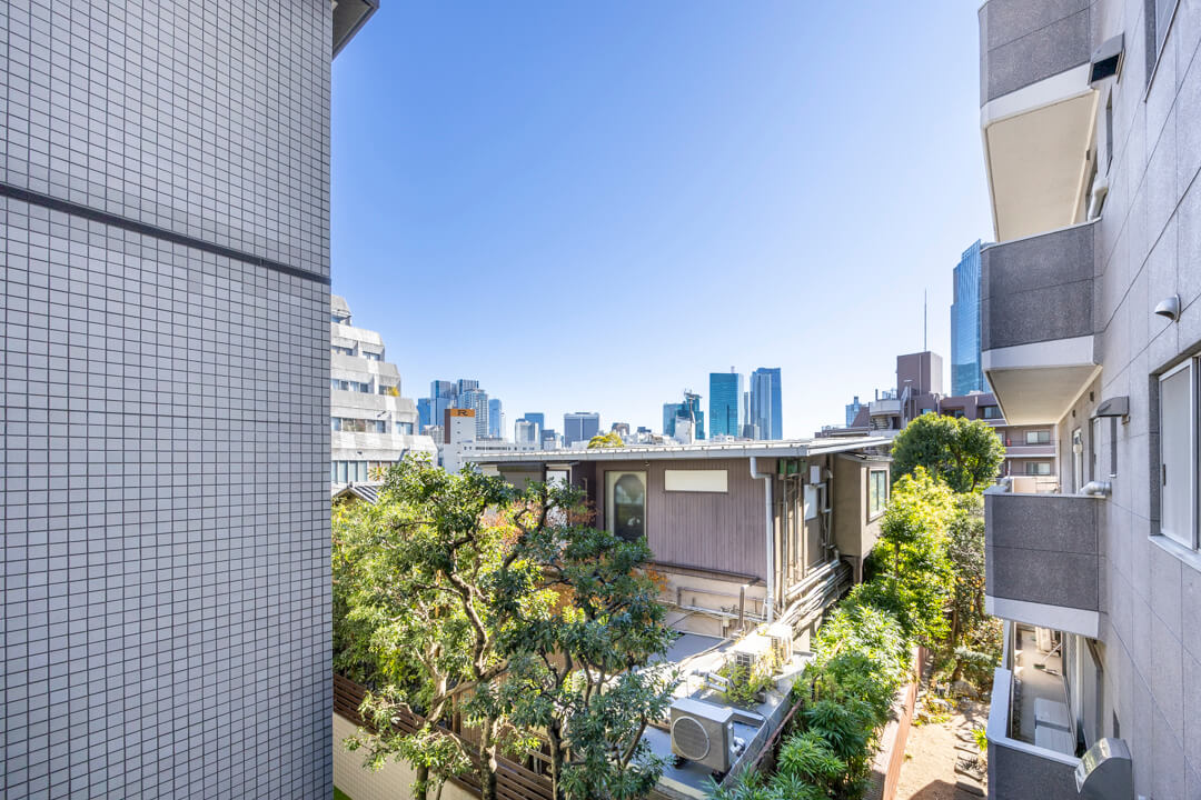 東京メトロ銀座線・都営大江戸線「青山一丁目」駅から徒歩6分のところにあります。他に「乃木坂」駅や「六本木」駅からも徒歩圏内なので行先に合わせて使い分けることができます。通勤通学にも便利ですね。東京ミッドタウンや赤坂サカスなどの商業施設が揃っているのでショッピングも気軽に楽しめるエリア。さらに、周辺には教育施設や大使館があり、公園も点在しているので落ち着いた中に緑がある住環境になっています。