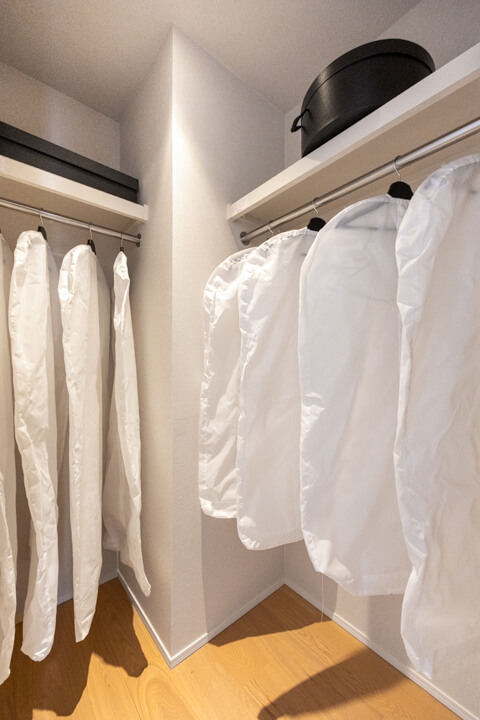 WIC(ウォークインクローゼット)完備で収納力◎。衣類だけでなく、トランクケースなどの大きな荷物も収納でき、居室空間を有効活用できます。