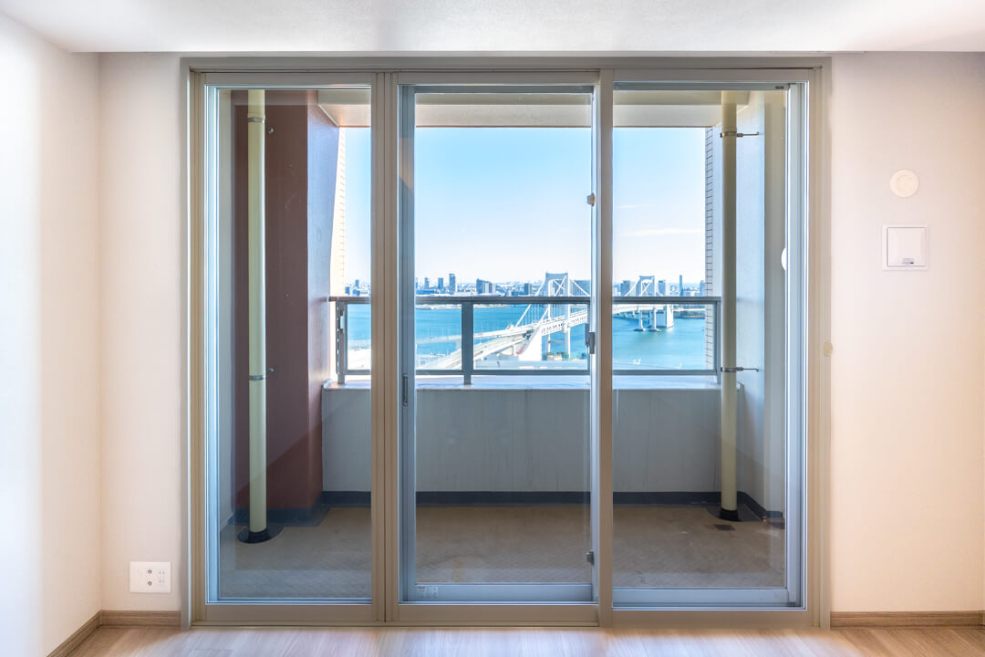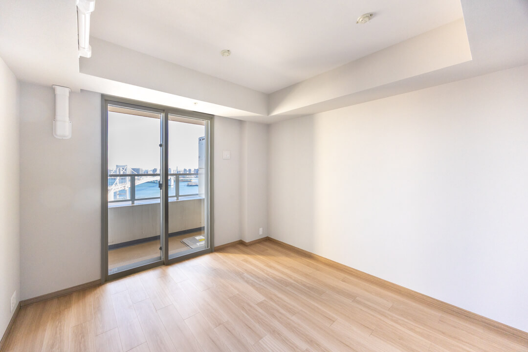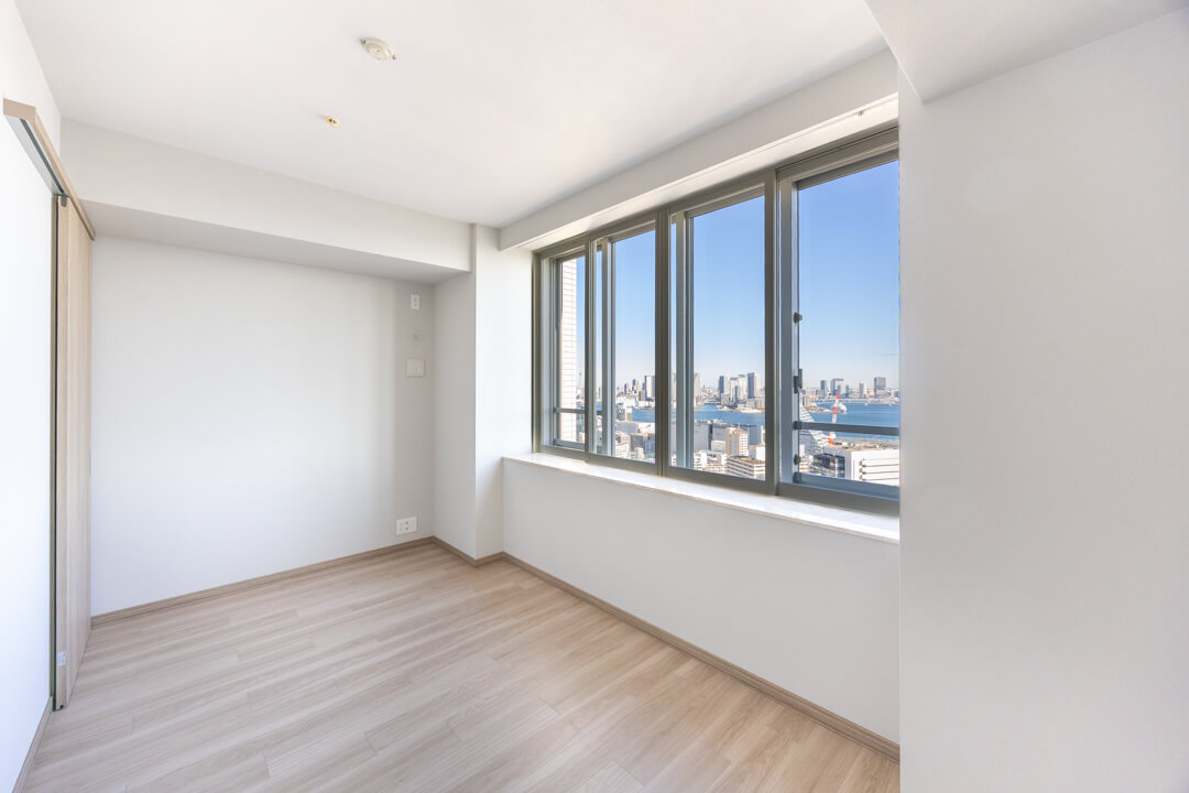 ゆとりのある洋室1は主寝室にぴったり。大きな窓から朝日が差し込み、すっきりと目覚められそうです。レインボーブリッジを一望できる開放的な眺めも魅力です。