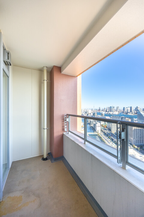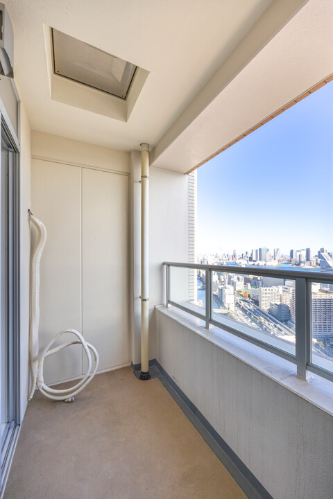バルコニーは2ヶ所あり、どちらも東向き。朝日が差し込み、爽やかな目覚めのひとときを楽しめそうです。36階部分からの開放感溢れる眺望も魅力的。遠く広がる青空に広大な運河、レインボーブリッジを一望できます。北東側にはスカイツリーも見えますよ(※天候によります)。