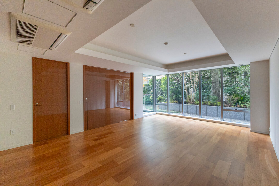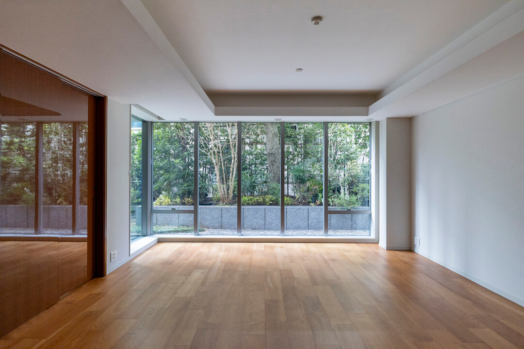 港区六本木の高台に佇む「プラウド六本木」。2017年竣工、地上5階建・総戸数35戸の高級低層レジデンスです。オートロックや24時間有人管理、コンシェルジュサービスを完備し、安心・快適な暮らしを提供します。徒歩4分の「六本木」駅をはじめ、複数路線利用可能で利便性も良好。今回ご紹介するのは2階部分、専有面積100㎡の2LDKです。リビングには南西向きのハイサッシが並び、光と緑に満ちた開放的な空間を演出。独立キッチンには食洗機・ディスポーザーを備え、毎日の家事も快適です。全居室床暖房やWIC・SICといった豊富な収納が整い、上質でゆとりある都市生活を叶えます。