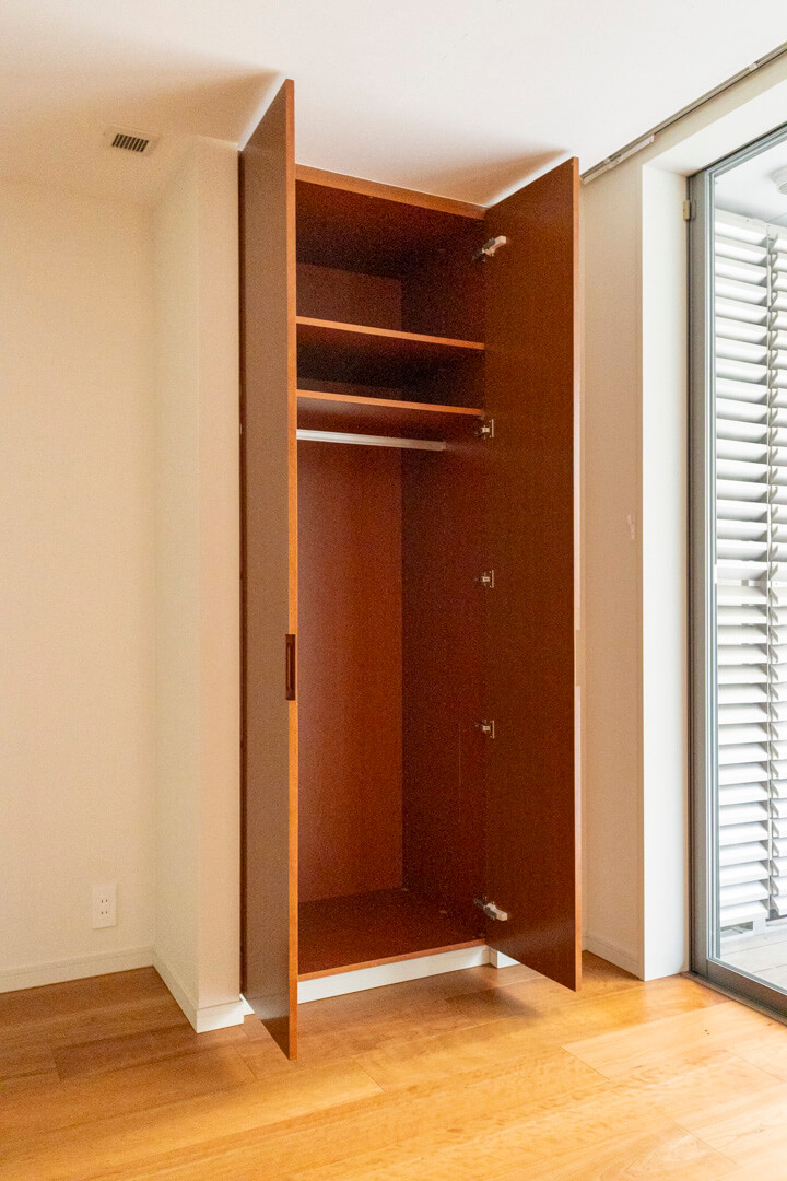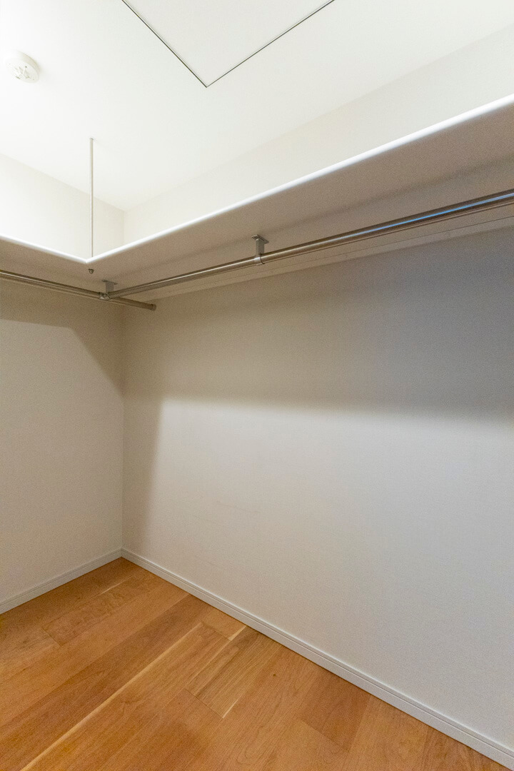 約2.0帖のWIC(ウォークインクローゼット)があり、収納性に優れています。衣類はもちろん、トランクケースやゴルフバッグといった大きな荷物も収納でき、居室空間を有効活用できます。