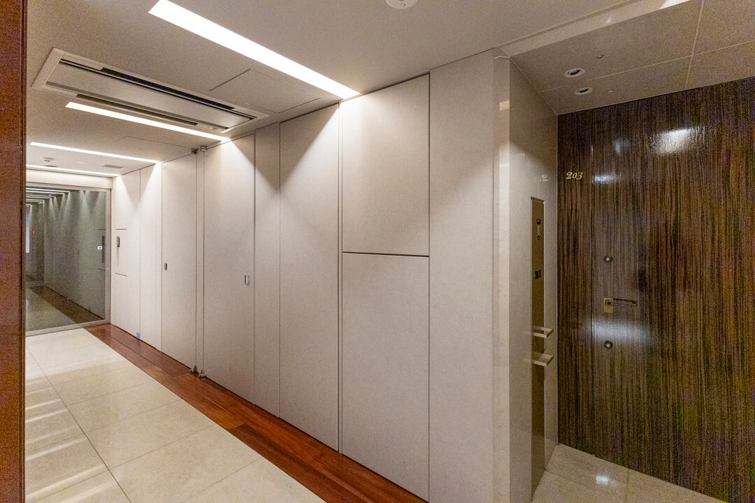 2017年(平成29年)8月に竣工した「プラウド六本木」。鉄筋コンクリート造地上5階建、総戸数35戸の高級低層レジデンスです。洗練された外観の周りには手入れされた植栽が並び、彩りを添えています。オートロック完備・24時間有人管理体制で暮らしの安心を支えてくれますよ。豊かな暮らしをサポートしてくれるコンシェルジュサービスも備わっています。不在時に重宝する宅配ボックスや、24時間使用できる各階ゴミ置き場が完備されているのも嬉しいポイント。総戸数分の駐車場が付設されていて、お出かけの幅が広がりそうです。