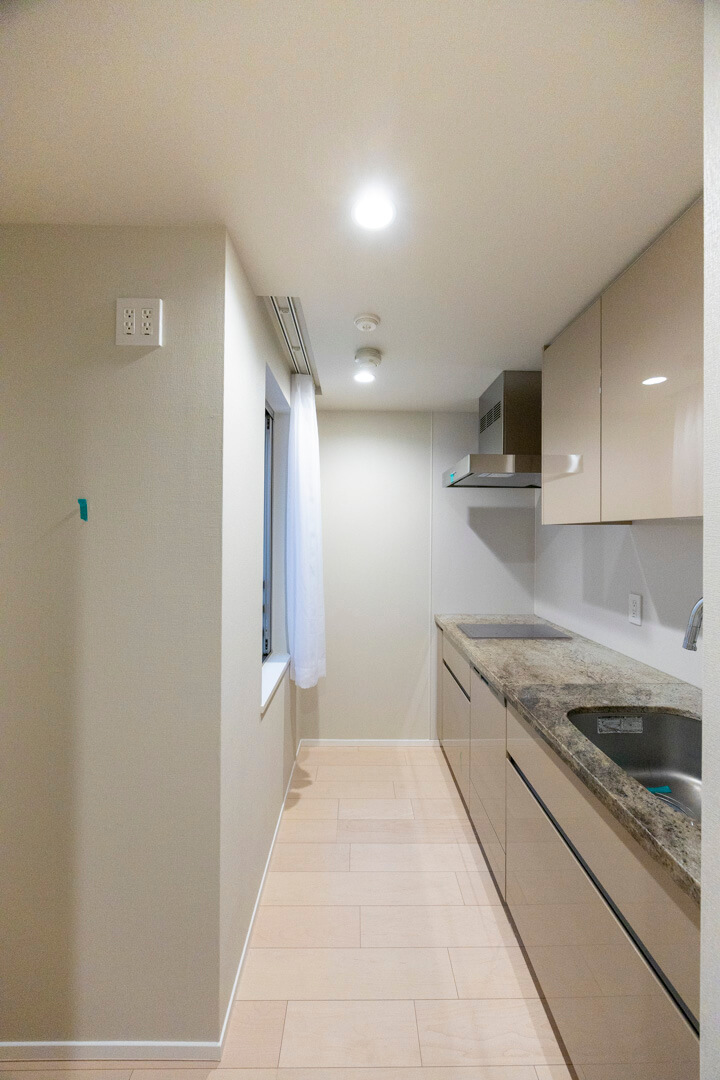 キッチンは、生活感が出やすいキッチンまわりをさりげなく目隠しすることができる独立キッチンです。窓があるので換気がしやすく、明るさもプラスしてくれます。