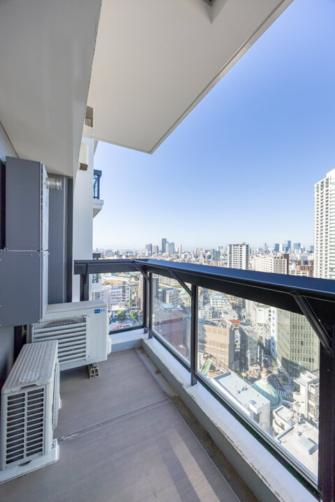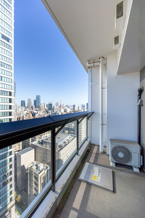 約7.92㎡のバルコニーです。20階部分のため、目の前には都会的で開放感溢れる眺望が広がっています。遠くの空には富士山や東京タワーが望め、日々の癒しになってくれそうです。