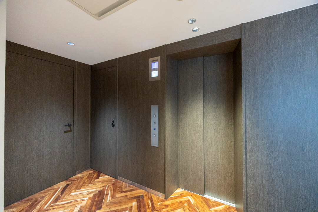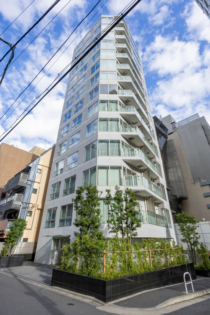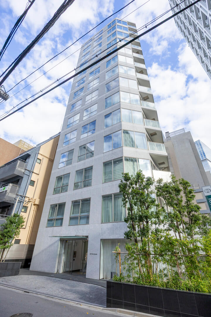2018年(平成30年)8月に竣工した「ジオ元赤坂」。鉄筋コンクリート造の耐震設計マンションです。地上14階建、総戸数は22戸。大きな窓と植栽の緑が印象的な外観です。防犯カメラや防犯センサー、オートロックが完備されています。さらに、24時間管理システム、セキュリティ機能付エレベーターも搭載されていて、安心して暮らすことができます。宅配ボックスや24時間ゴミ出し可能といった嬉しいサービスも揃っています。間接照明が施された共用エントランスはホテルライクな空間。ロビーにはちょっとした来客対応や待ち合わせに便利なソファスペースがあります。ヘリボーンのフロアでお洒落な雰囲気ですね。