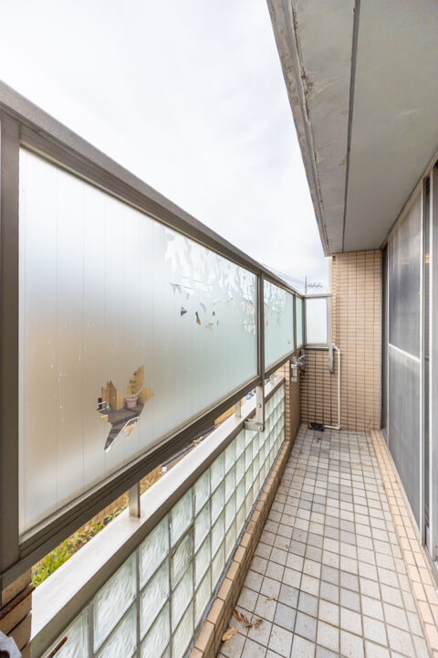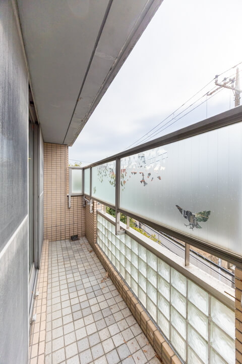 南向きバルコニーで日当たりが良好です。ガラスブロックやすりガラスが設置されているので、外からの視線をやわらかく遮りつつ、光はしっかりと取り込むことができますよ。
