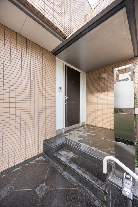 照明には人感センサーが付いているので、帰宅時に両手が塞がっていても安心です。消し忘れも防止できて節電にもなります。