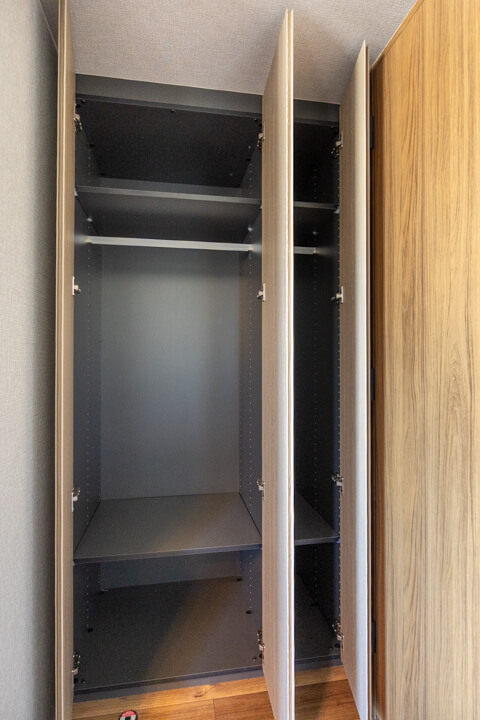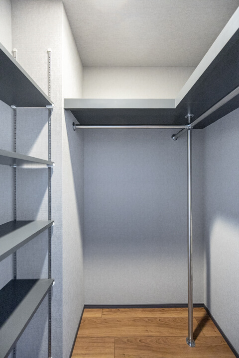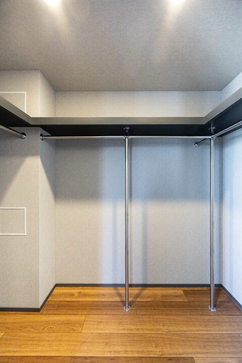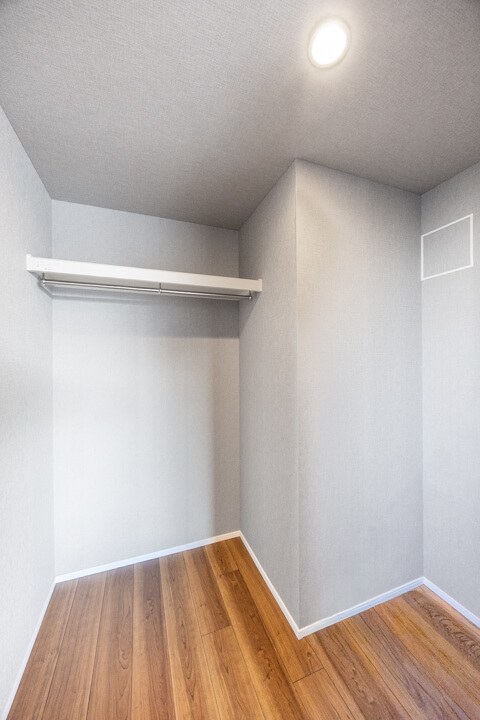 約7.7帖の洋室2にも、ウォークインクローゼットが造られています。さらに、奥行きがあるクローゼットもあるので収納スペースがたっぷり。荷物をきちんと収納できると、居住スペースをより有効的に使えるので嬉しいですね。