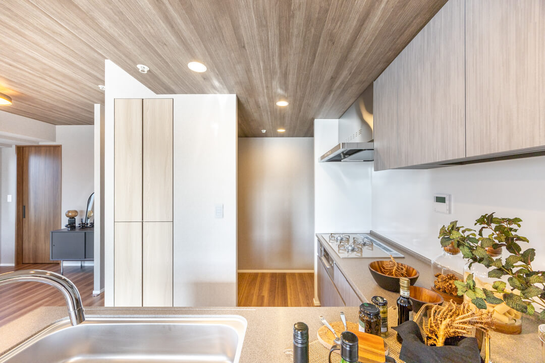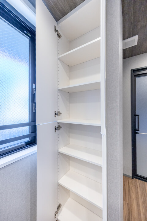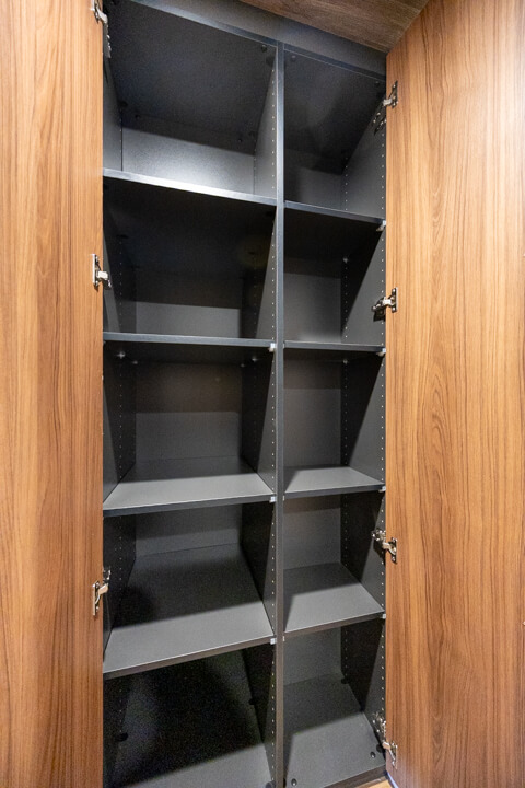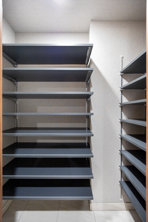 背面側にはパントリーが造られています。調味料やストック類などを収納できて便利。