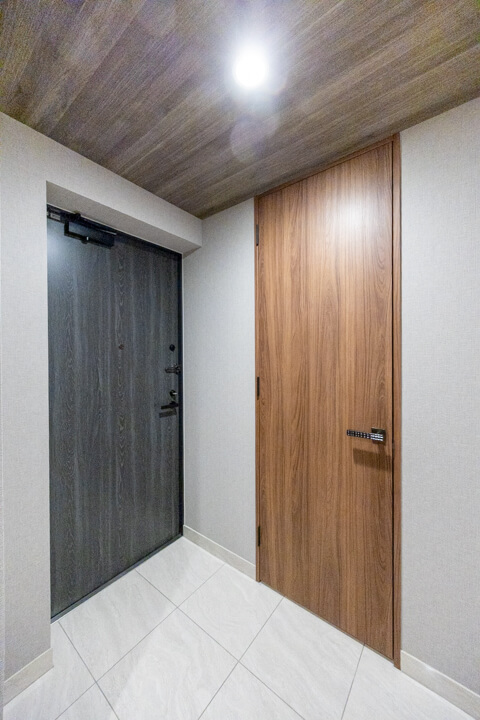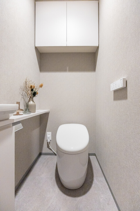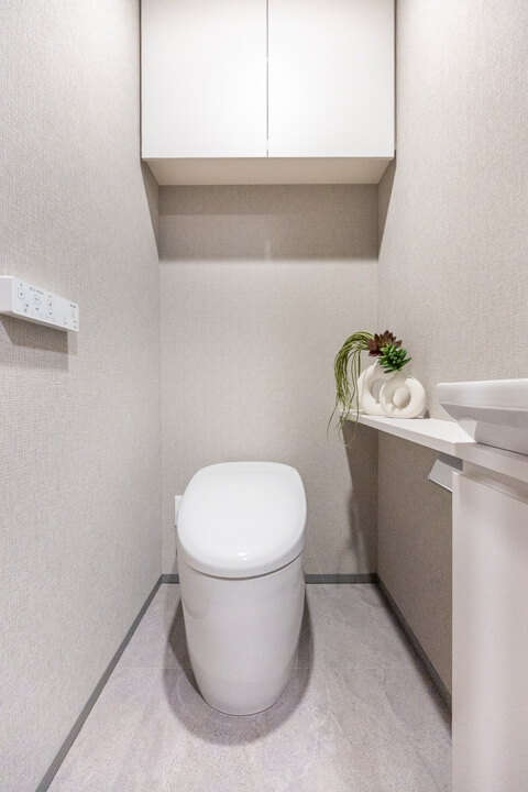 トイレはリビングダイニング側と居室側の2ヶ所に造られています。来客用とプライベート用とで使い分けることができて便利。どちらにも手洗い器が別途で設置されているので、その場でサッと身だしなみを整えることができます。