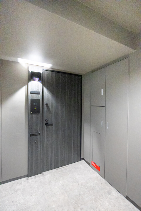 照明には人感センサーが付いているので、帰宅時に両手が塞がっていても安心です。消し忘れも防止できて節電にもなりますね。