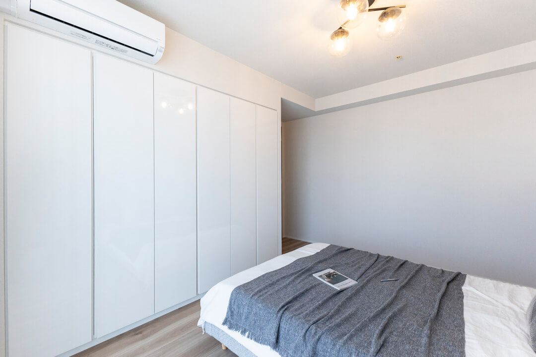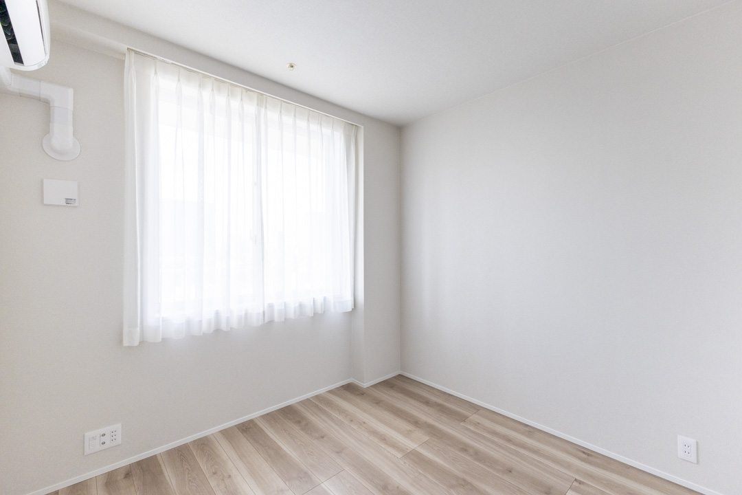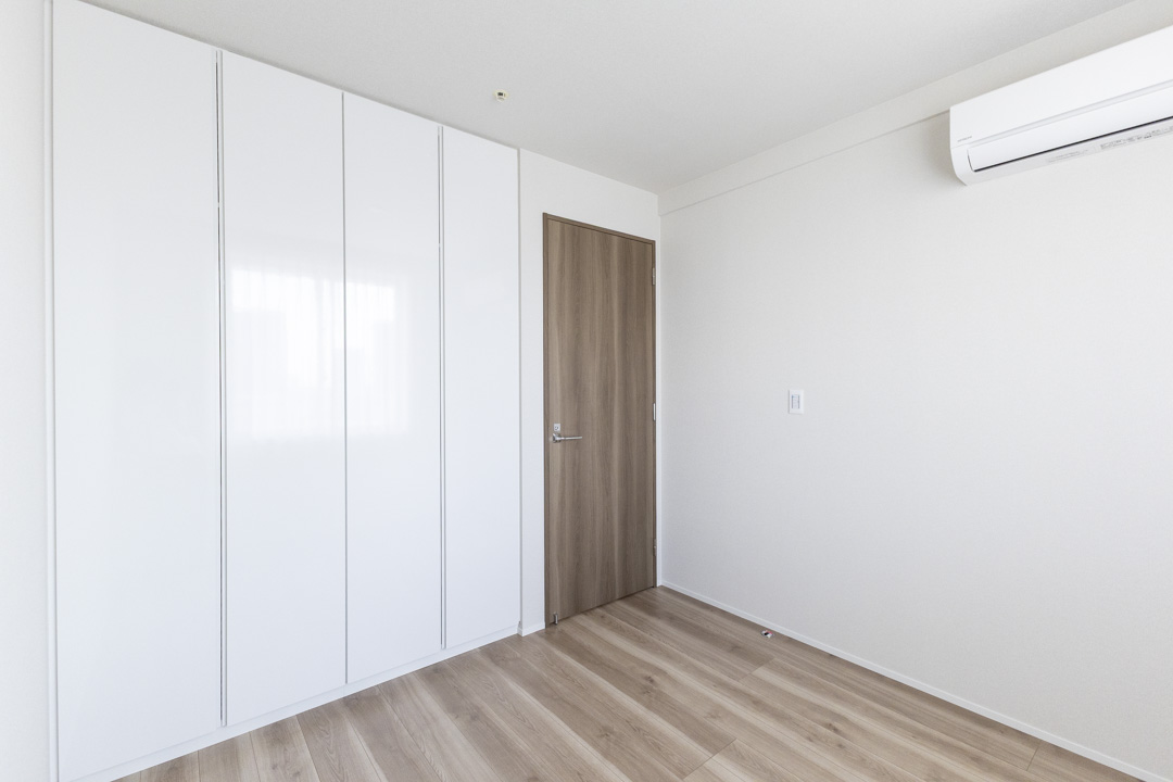 約4.9帖の寝室2。西向きの窓から明るい光が差し込みます。こちらのお部屋にも収納力のあるクローゼットが設置されていて、使い勝手の良い空間。寝室としてはもちろん、ワークスペースや趣味部屋にしても良いですね。