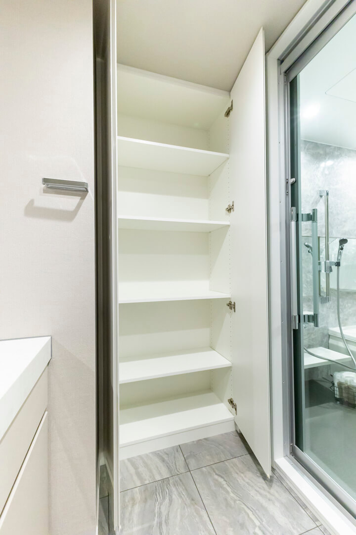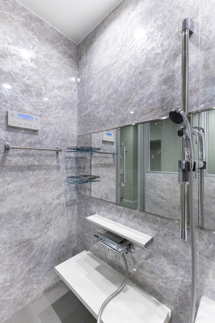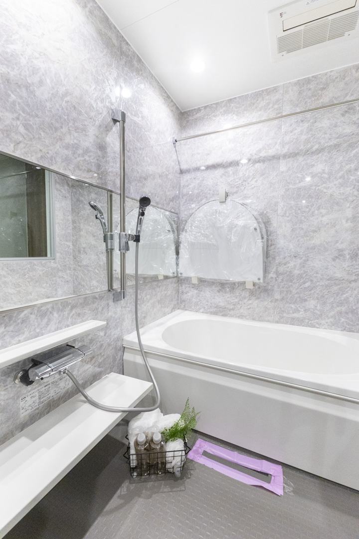 クリアドアや石調パネルを採用し、高級感の漂うバスルーム。換気・暖房・乾燥・涼風機能付きで1年中快適なバスタイムを過ごせます。追い焚き機能も付いているので、家族の入浴時間がずれてしまった時、半身浴をしたい時に重宝しそうです。