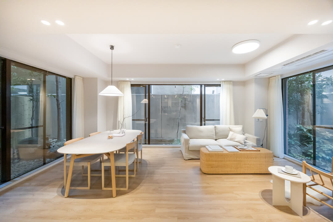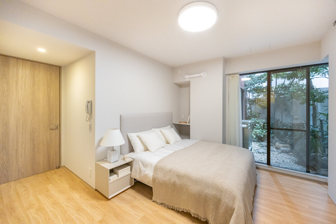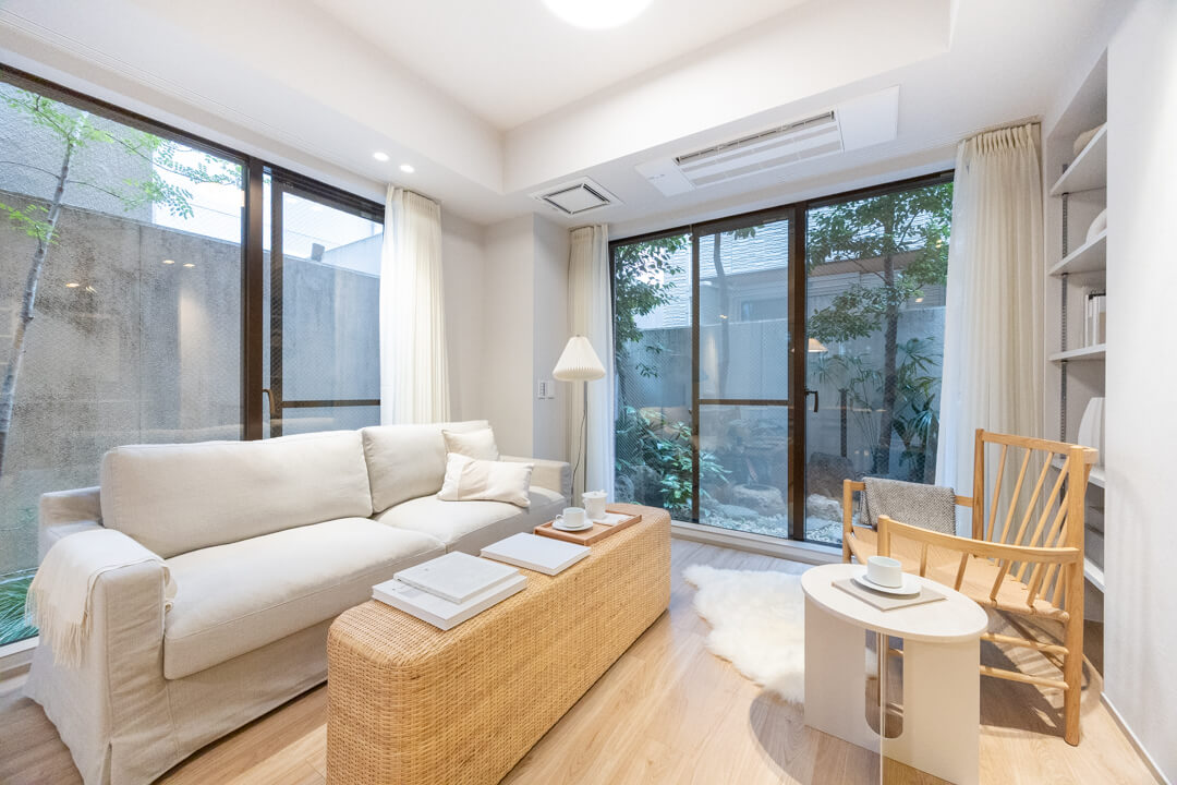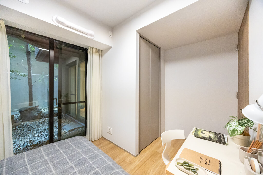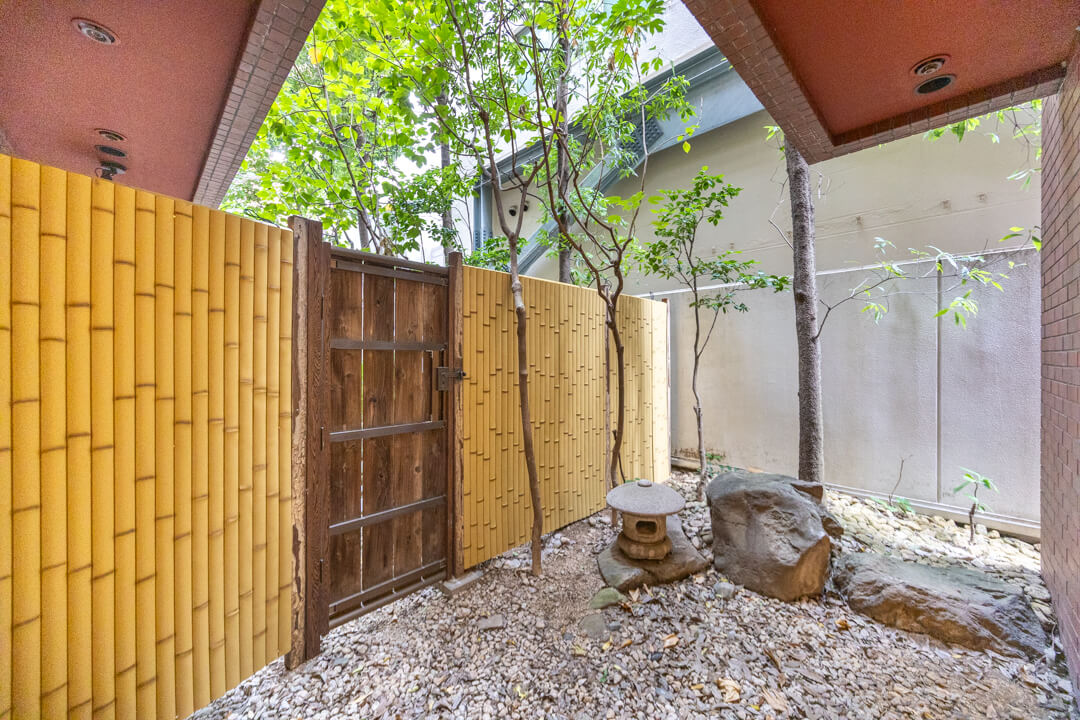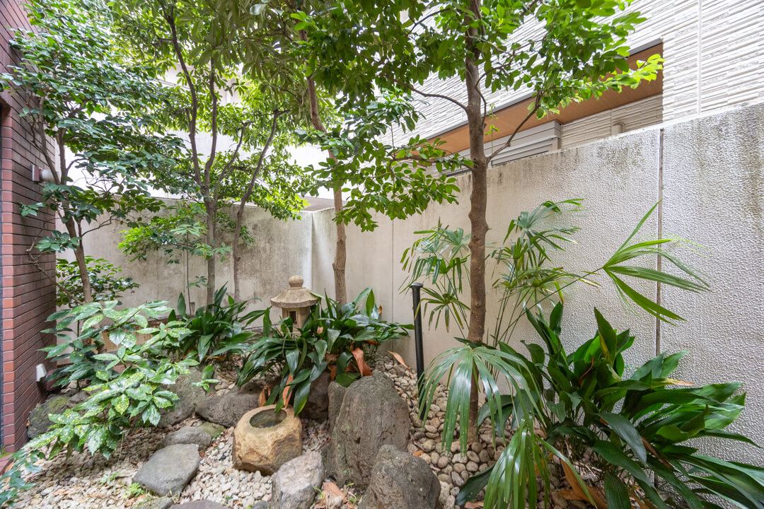 約38.63㎡の専用庭は、日本庭園のような趣のある雰囲気に包まれています。