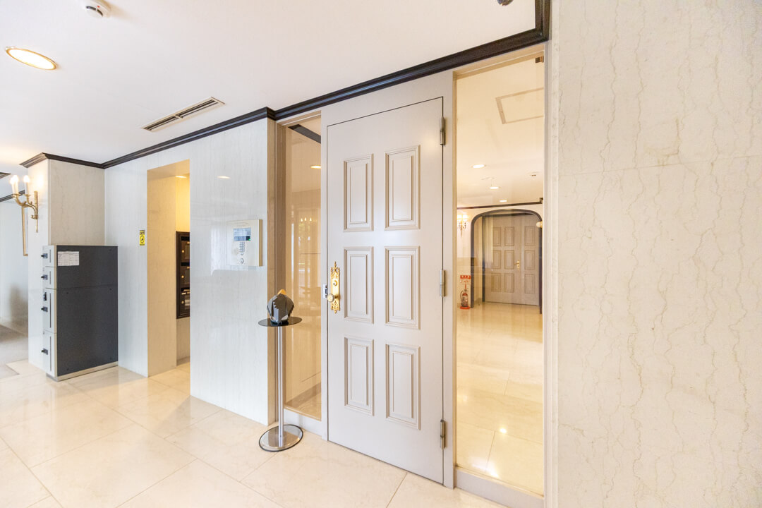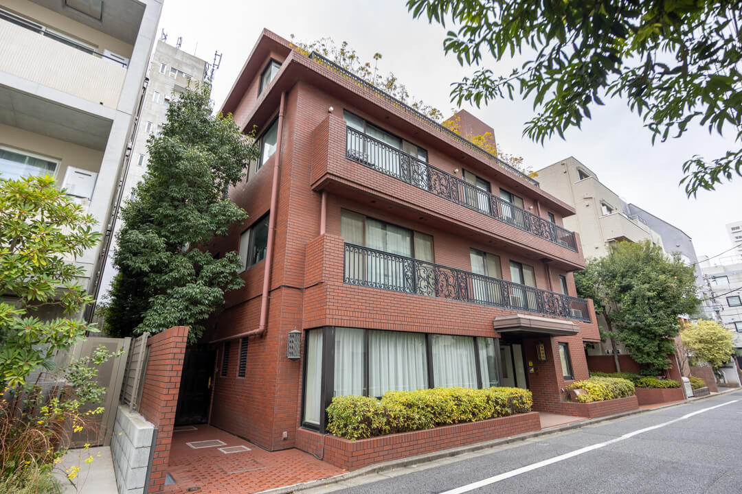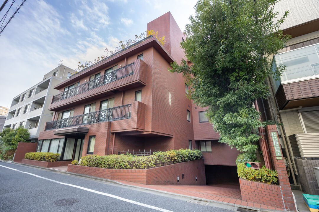 1989年(平成元年)7月竣工、総戸数9戸、鉄筋コンクリート造、地下1階付地上4階建ての低層マンションです。赤褐色のタイルが特徴的な外観、エントランスやロビーは重厚感を漂わせています。オートロック完備でセキュリティ面は安心です。