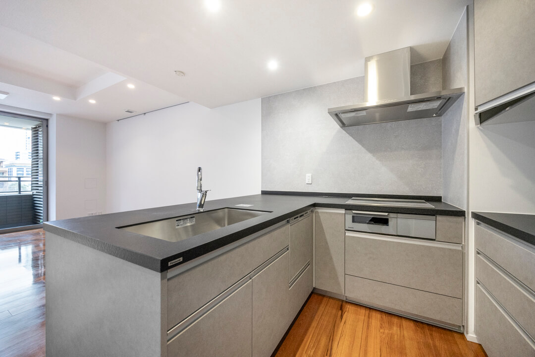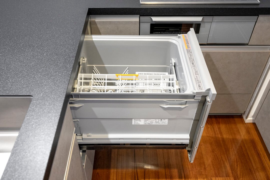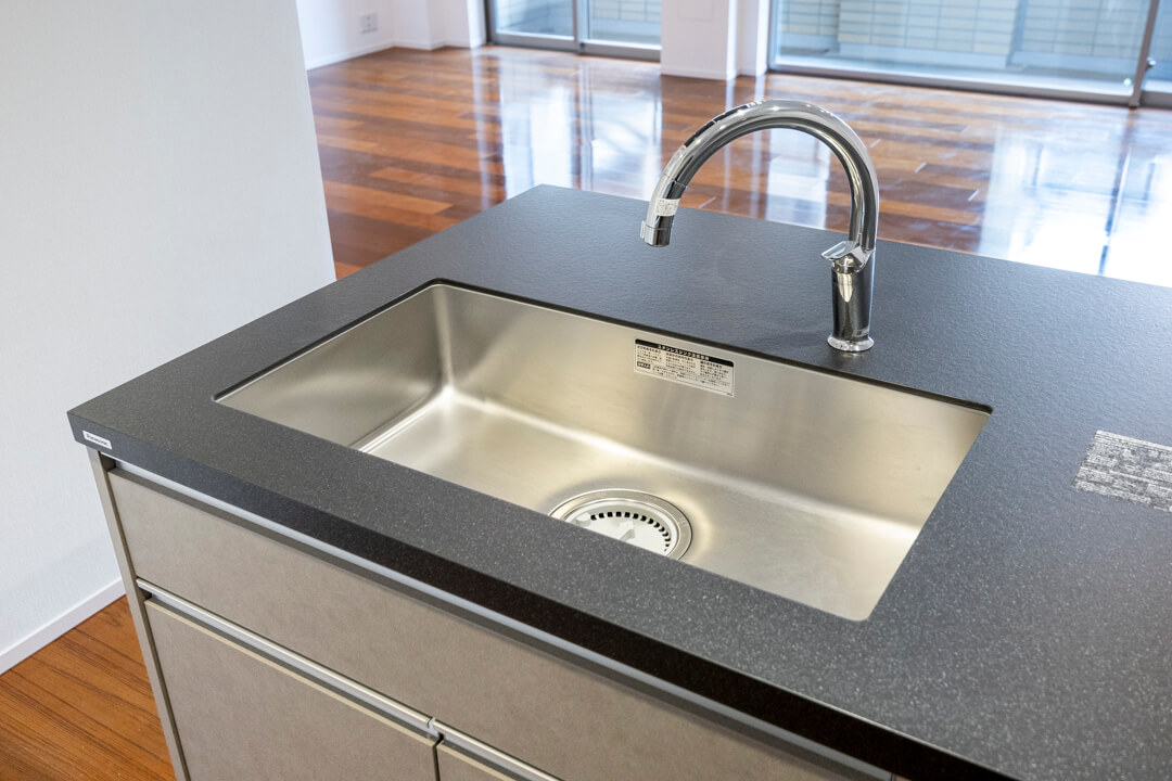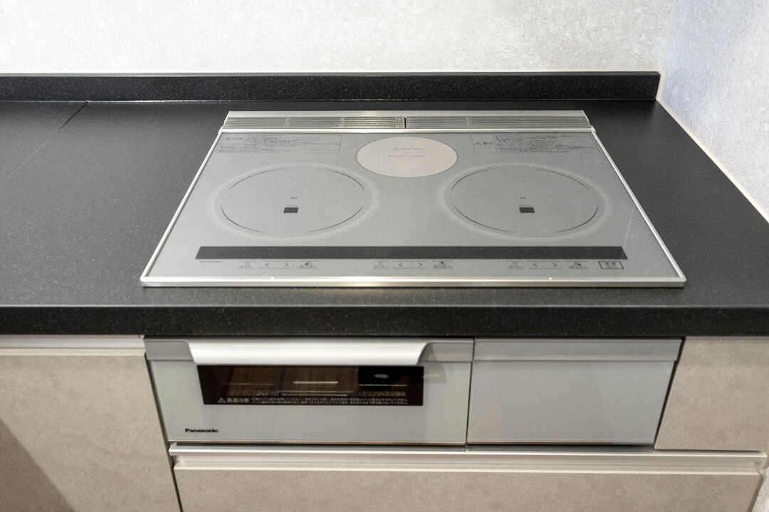 3口IHクッキングヒーター、グリル、ディスポーザー、食洗機付きと設備面も充実しています。シンクも広々としているので野菜などが洗いやすそうですよ。