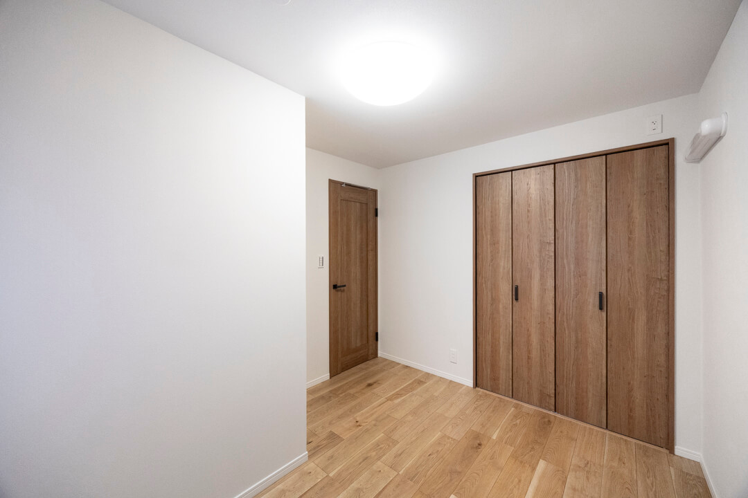 向かい側にある洋室2も約5.0帖。窓&クローゼット付きで使い勝手の良い空間です。木のぬくもりを感じるナチュラルな内装で、さまざまなテイストのインテリア選びを楽しめそうですね。