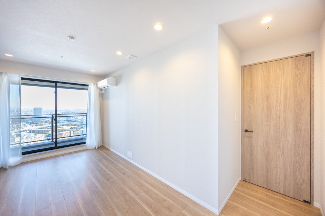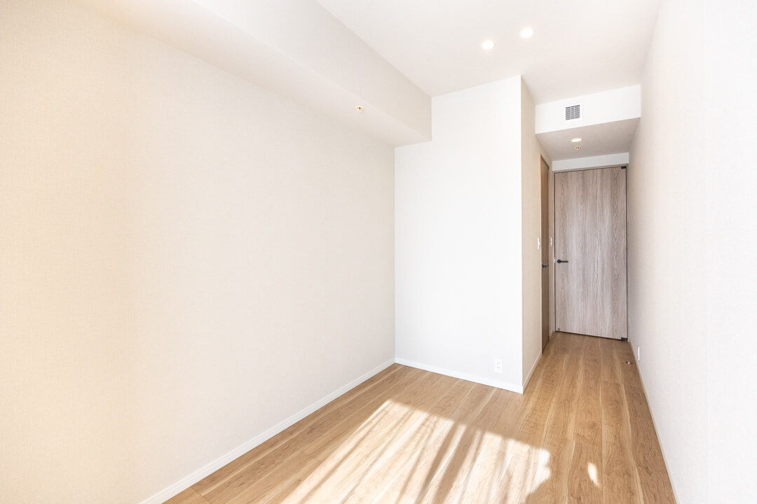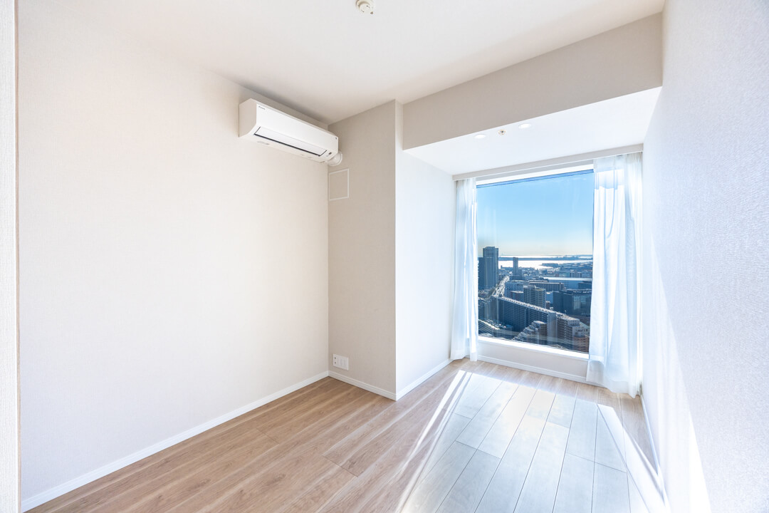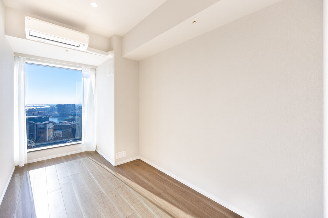 約5.6帖の寝室3。寝室1の向かい側に位置しています。南向きで日当たり良好。青空と運河を望む、開放的な眺めも魅力です。クローゼット完備で収納スペースもしっかり確保◎。寝室としてはもちろん、ワークスペースや趣味部屋としても使い勝手の良い空間です。