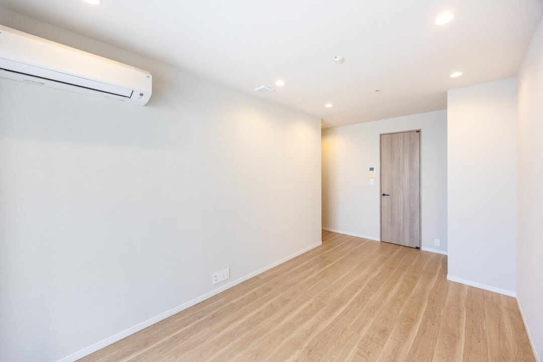 寒い季節に重宝する床暖房を完備。床全体がほぼ均一に温まるので、足元からじんわりと温まることができます。埃を舞い上げにくく、空気が乾燥しにくいのも嬉しいですね。直接火に触れる心配がないので、小さなお子さまのいるご家庭でも安心して使用できそうです。ビルトインエアコンも設置されていて、生活感を抑えつつ、室内全体を快適に保つことができます。