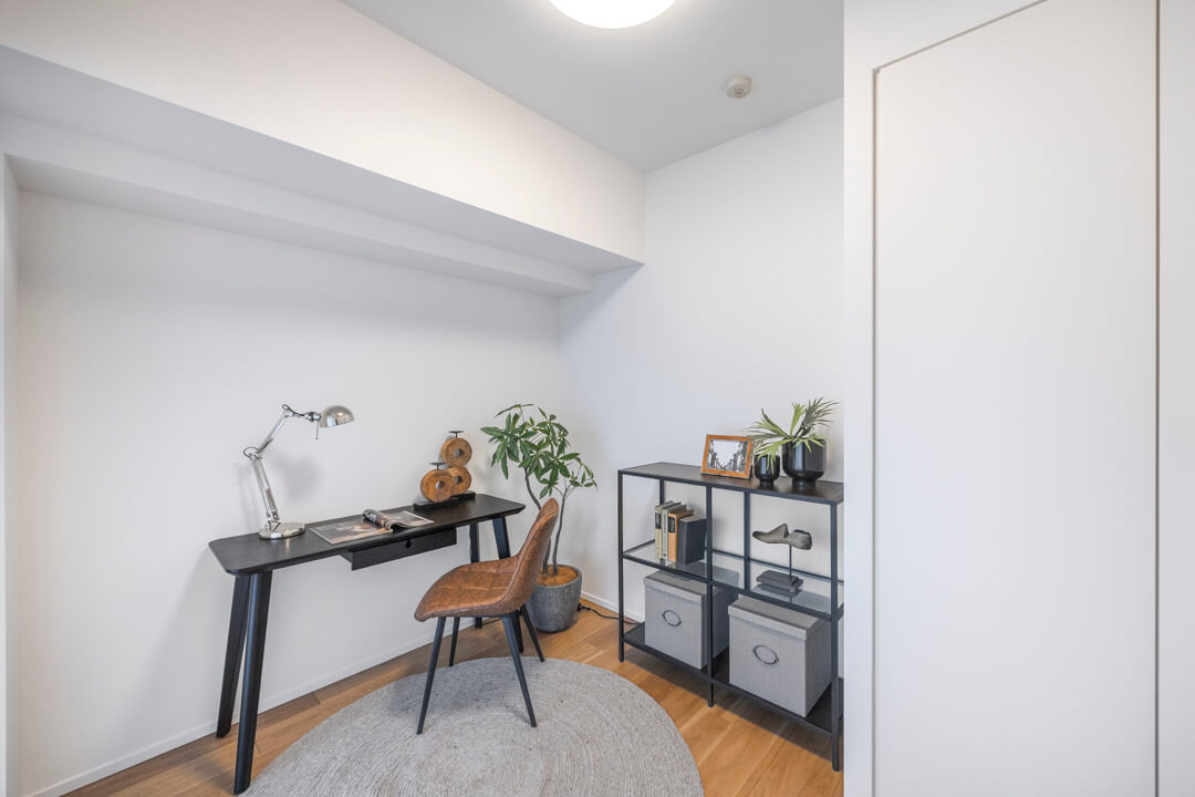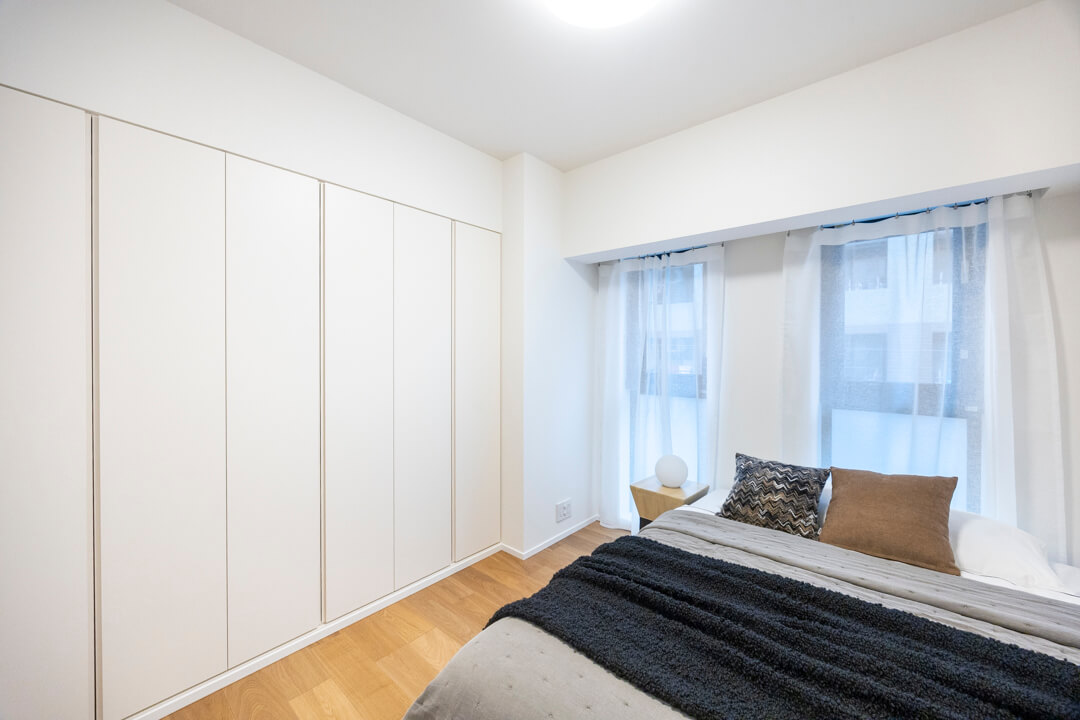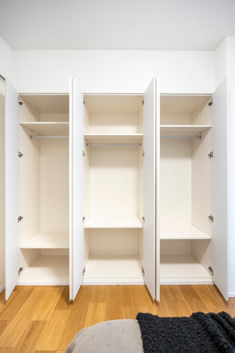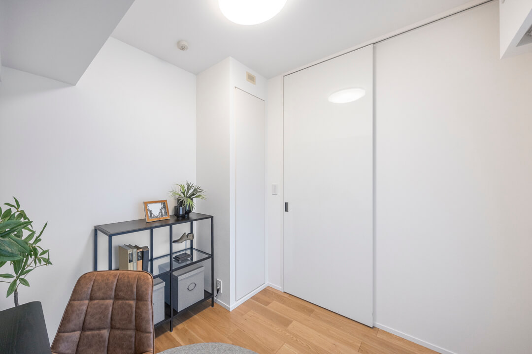 約5.2帖の洋室。廊下に面した独立性の高いお部屋で、自分時間をゆっくりと過ごせます。6枚扉のクローゼット付で洋服もたっぷりと収納できます。