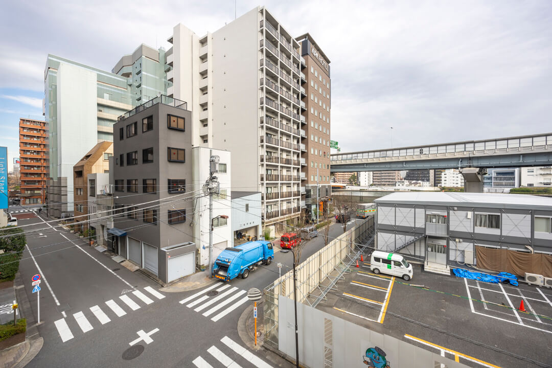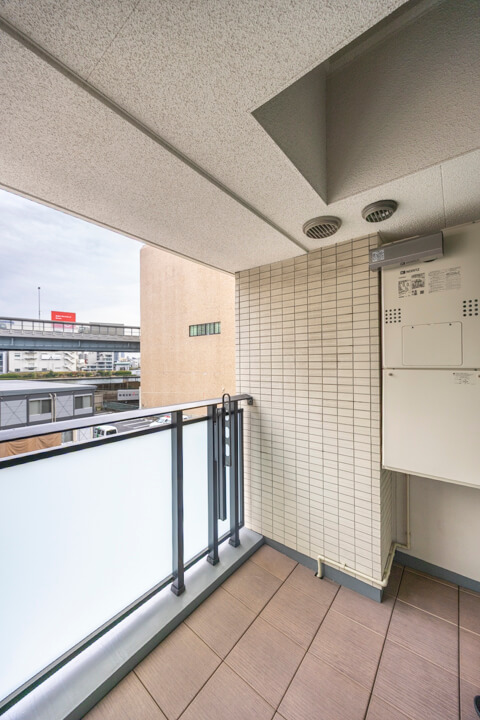 洋室(約4.3帖)に面したバルコニー。朝のやわらかな光が感じられる北東向きです。バルコニー目の前は見晴らしのいい景色となっています。