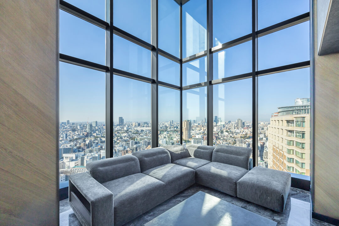 2009年竣工の「シティタワー麻布十番」は、総戸数502戸を誇る大規模タワーレジデンス。24時間有人管理や充実した共用施設が、都心での安心と快適な暮らしを支えます。ご紹介するお部屋は37・38階に位置するメゾネットタイプのプレミアム住戸。150㎡超のゆとりある1LDKで、吹き抜けのリビングにはダイナミックなパノラマウィンドウを採用しています。南西・北西の2面採光と高層階ならではの眺望が、伸びやかな開放感を演出。大理石フロアやビルトイン暖炉、床暖房など上質な設えも魅力です。さらに、プライベートサウナやジャグジー、機能美を備えた衣装部屋など、暮らしの質を高める設備も充実。日常を非日常へと昇華させる特別な住まいです。