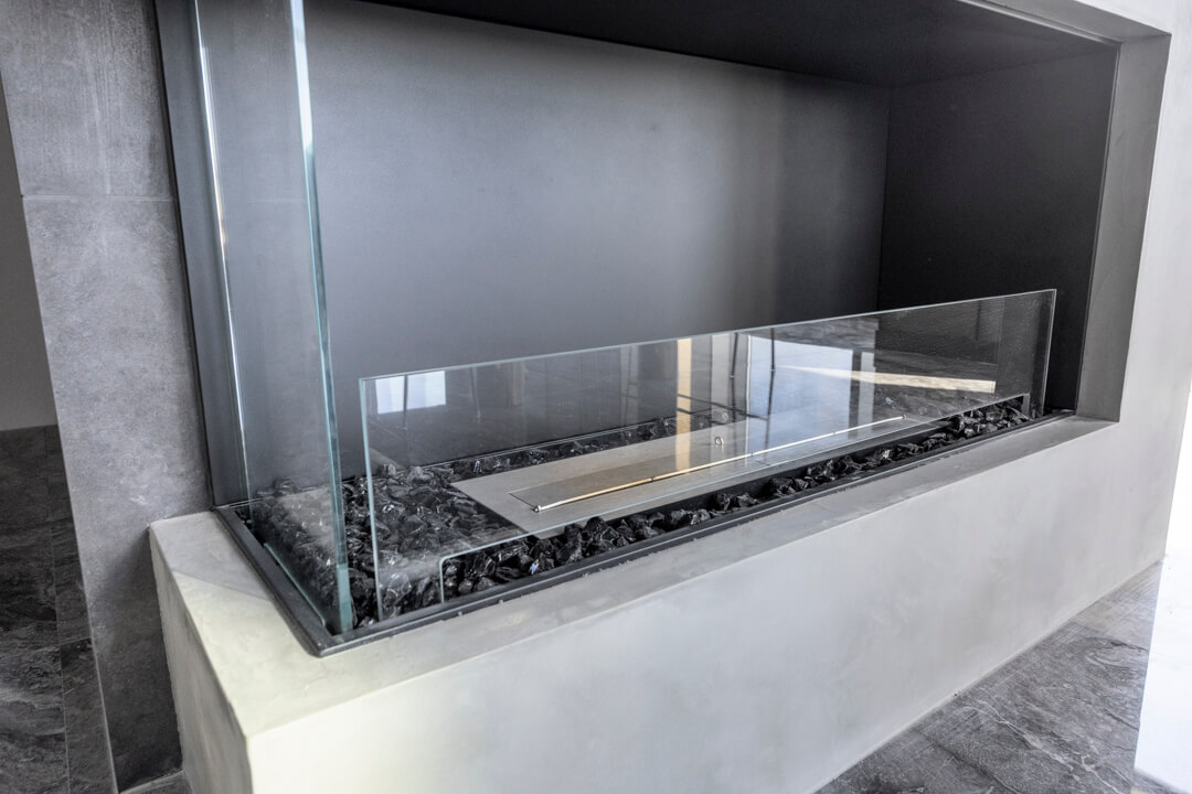 さらに、EcoSmart Fire(エコスマートファイヤー)のビルトイン暖炉を完備。炎の揺らぎがくつろぎの時間をより豊かに演出します。床暖房も敷設されていて、寒い季節も快適にお過ごしいただけます。