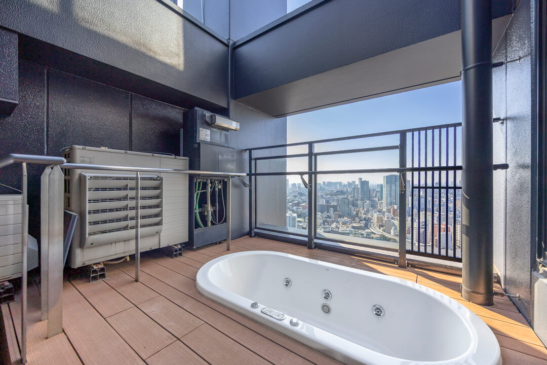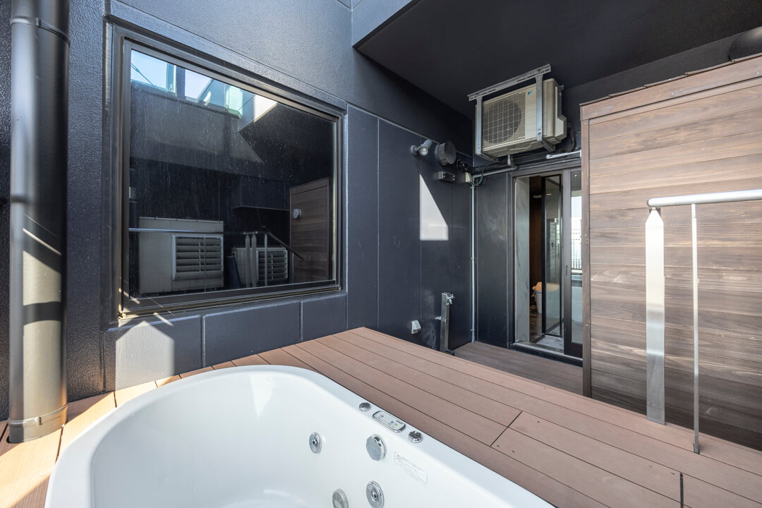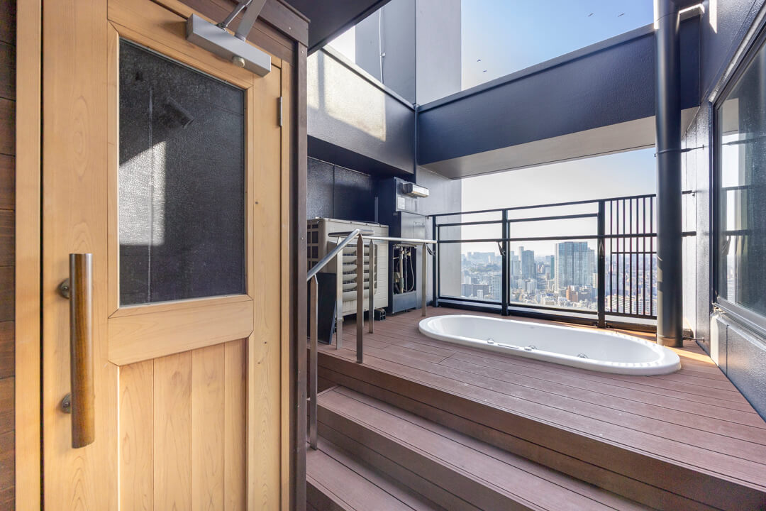 サウナを完備しており、周囲を気にすることなく、好きな時間に心ゆくまで“ととのう”ひとときをお楽しみいただけます。さらにルーフバルコニーには、KOHLER(コーラー)製のジャグジーを設置。サウナ後にそのまま外気浴や水風呂を楽しむなど、開放的な空の下で、プライベート感あふれるバスタイムが叶います。都心にいながらも、日常を離れたリラクゼーションを味わえる特別な空間です。