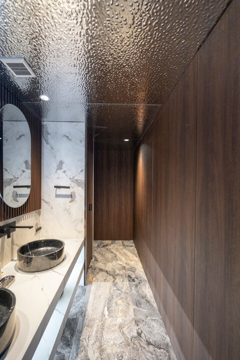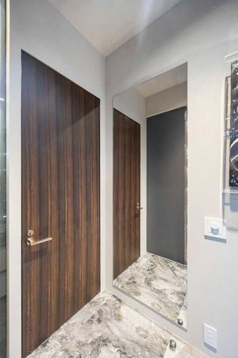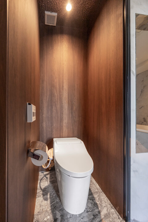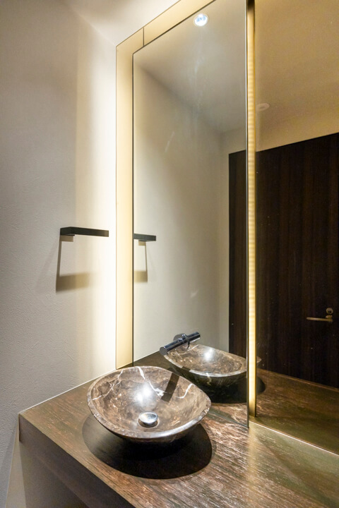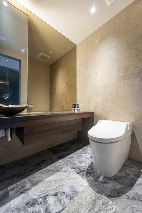 レストルームは各階に配置されています。37階のトイレは廊下に面した独立性の高い設計で、手洗いカウンターを備えたホテルライクな空間。ゲストを洗面室まで案内する必要がなく、来客時にもスマートに対応できます。一方、38階のトイレは洗面室内に設けられており、プライベート用としてご家族での使用に適しています。