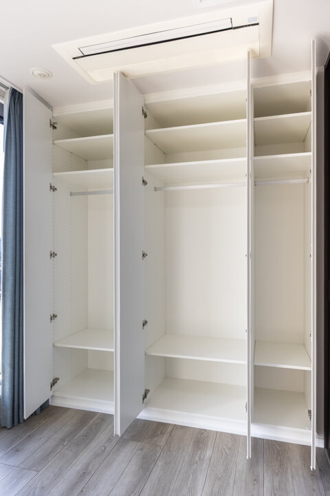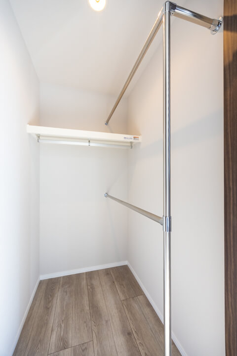 WIC(ウォークインクローゼット)とクローゼットの2つの収納スペースが設けられていて、洋服がたっぷりと収納できます。