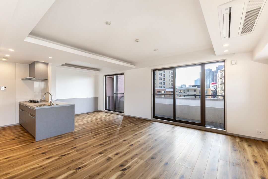 南・西・北の3面バルコニーは、日当たりと通風に恵まれた開放的な空間。合計16㎡超のゆとりある広さを確保しています。最も広い南向きバルコニーはLDKに接続し、室内へ明るい光をたっぷりと取り込みます。11階部分ならではの抜け感があり、広がる空を眺めながら穏やかなひとときを過ごせそうです。