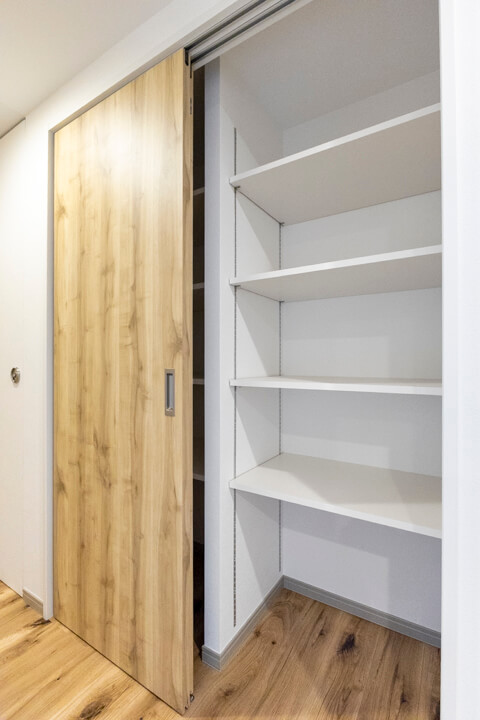 収納力のあるWIC(ウォークインクローゼット)を完備。衣類はもちろん、トランクケースや季節家電といった大きな荷物も収納でき、居室空間を有効活用できます。