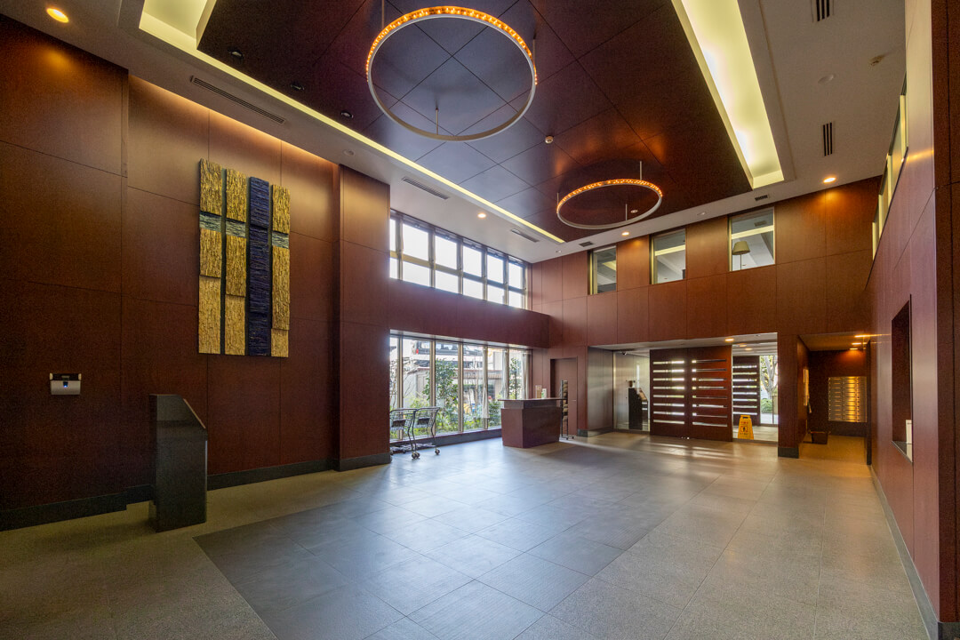 2004年(平成16年)12月竣工、総戸数175戸、鉄筋コンクリート造、地上9階建てのマンションです。広々としたアプローチがあり、来客用の駐車スペースがあったりと快適な共用部。コミュニティールームやゲストルームなど共用施設が充実しているのも魅力の一つです。また、24時間有人管理、コンシェルジュサービス、ダブルオートロック、モニター付きインターホンでセキュリティ面も安心。宅配ボックスも完備されているので、忙しい方でも時間を気にせずに荷物を受け取ることができます敷地内には、駐車場・駐輪場・バイク置場もあるのでご利用を希望される方は空き状況を確認してみてください。細則はありますが、ペットの飼育も可能となっています。