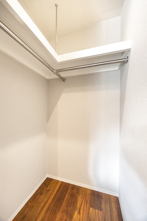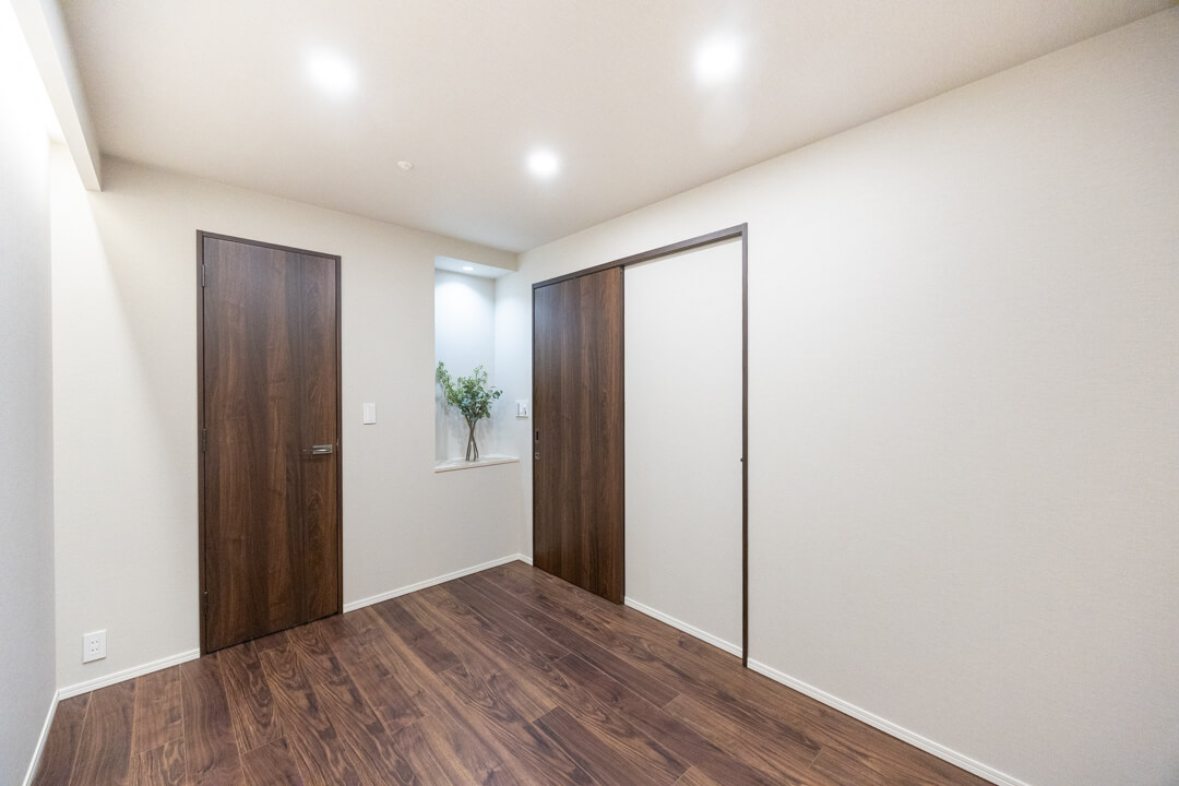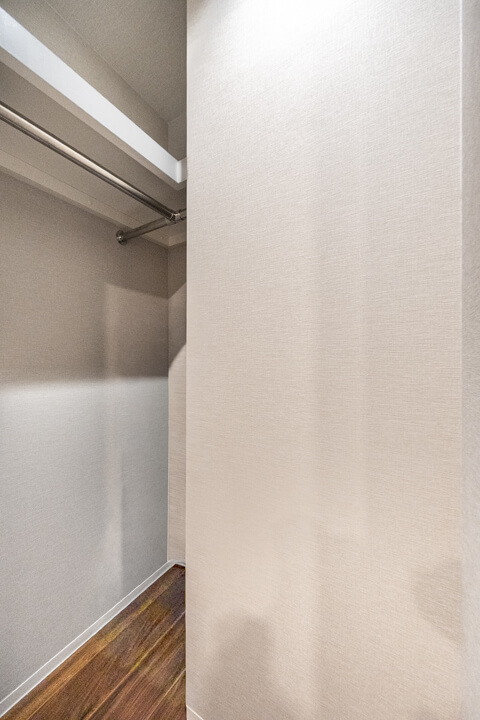 約7.6帖の洋室。廊下に面した独立性の高いお部屋で、自分時間をゆっくりと過ごせます。WIC(ウォークインクローゼット)も付いていて、洋服がたっぷりと収納できます。