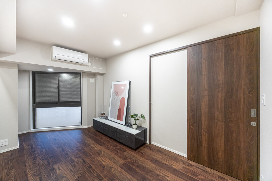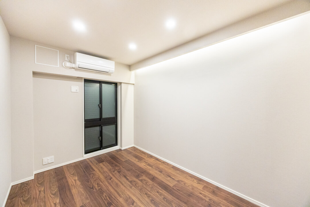 約6.0帖の洋室。間接照明が施されていて空間をやさしい光で照らします。WIC(ウォークインクローゼット)、エアコンも備わっています。