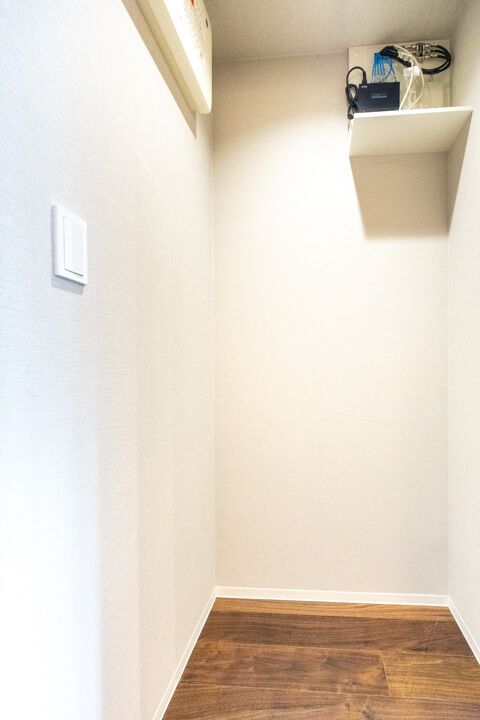 リビングダイニングには約0.6帖の納戸とWIC(ウォークインクローゼット)付きで収納スペースが充実しています。季節物の洋服から家電まで、場所を取る生活雑貨を整頓できます。