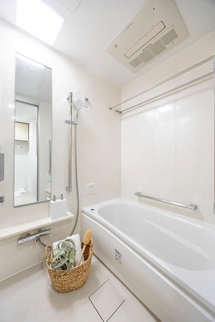 1317サイズのバスルーム。浴室換気乾燥暖房機・追い焚き機能に加え、ミストサウナも搭載されています。汗をかいてリフレッシュしたり、ゆっくりボディケアをしたり。1年中快適なバスタイムをお過ごしいただけます。