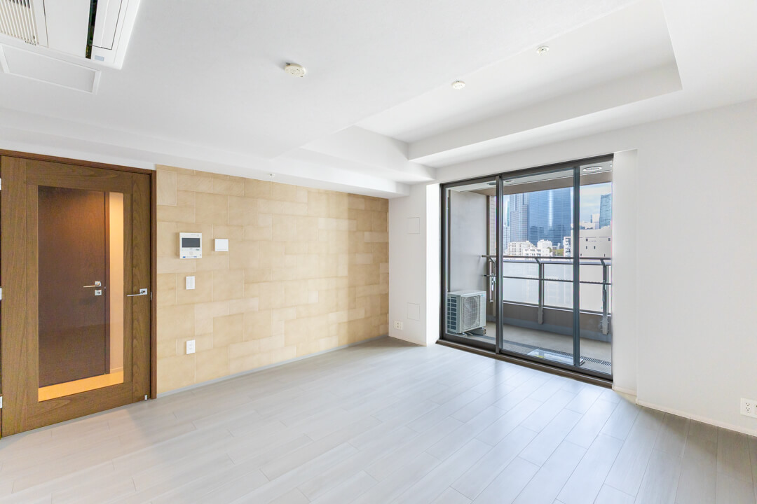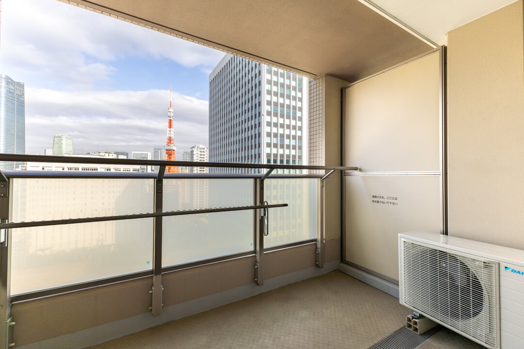 リビングダイニングに接続するバルコニー。正面には東京タワーを望む、都心ならではの贅沢な眺望が広がります。昼間は開放感あふれる景色を、夜にはライトアップされた東京タワーとともに、静かなリラックスタイムを愉しめる特別な空間です。