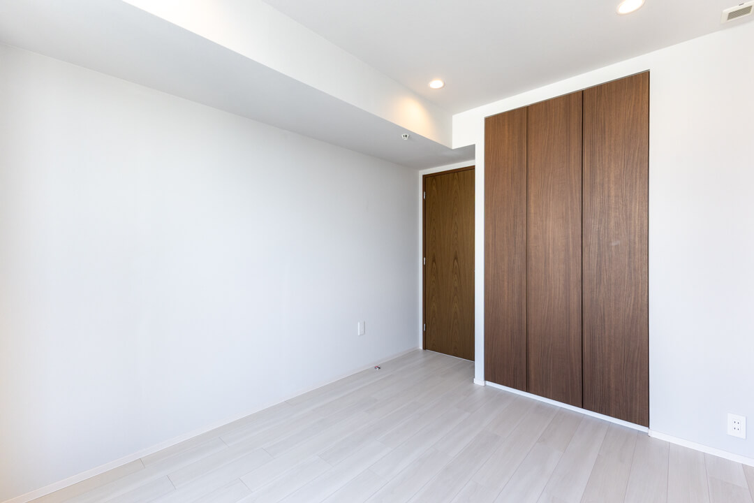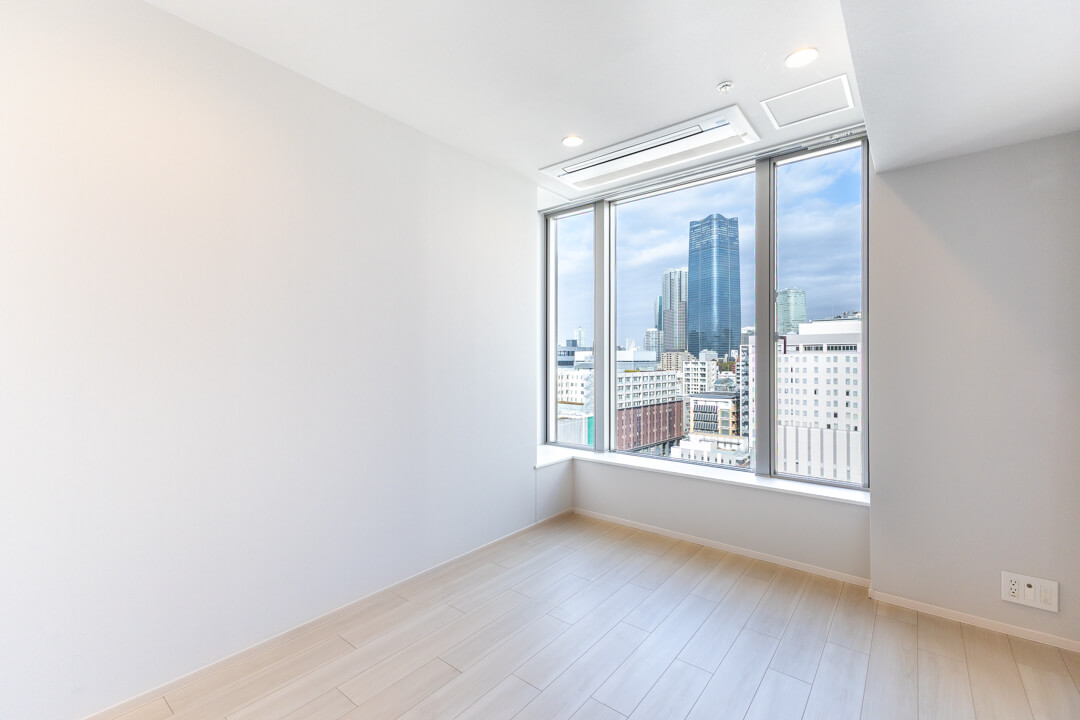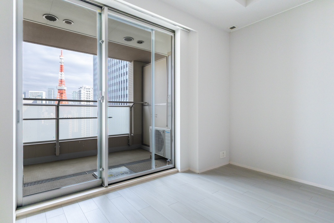 約6.3帖の寝室。こちらのお部屋からも東京タワーを望むことができます。都心の夜景を身近に感じながら、一日の終わりに穏やかなひとときを。ビルトインエアコンを備え、季節を問わず快適な室内環境を実現できます。収納力のあるクローゼットも完備しています。