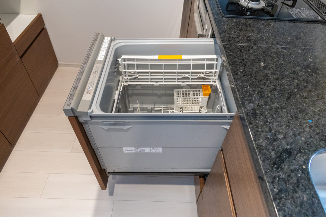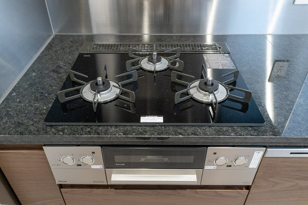同時調理が叶うグリル付3口ガスコンロ、調理の際に手軽においしい水を使える浄水器を内蔵。さらに、ディスポーザー&食洗機も完備されています。料理後すぐに生ゴミを処理できるので、悪臭の原因を防ぎ、掃除の手間を軽減。食器洗いも捗り、後片付けの時短が叶います。
