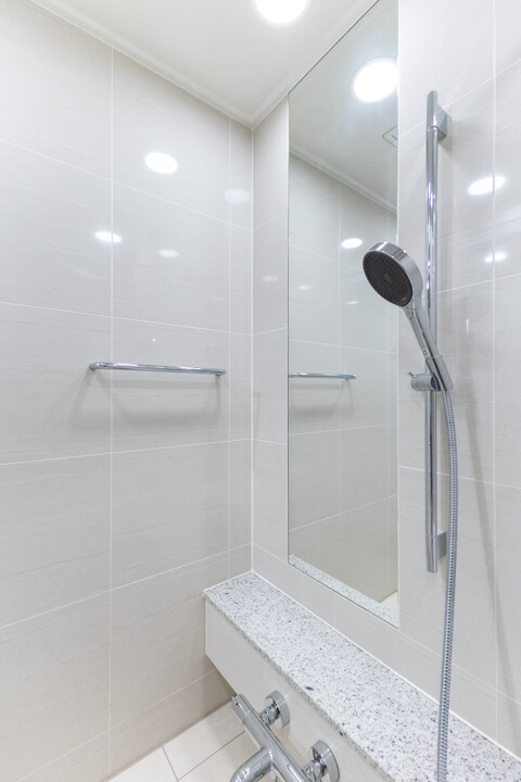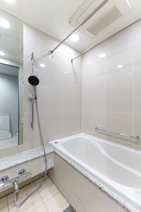 1317サイズのバスルーム。上質で清潔感溢れる空間です。換気・暖房・乾燥・涼風機能付きで1年中快適なバスタイムに。お風呂にゆっくり浸かるのが好きという方に嬉しい追い焚き機能も搭載されています。