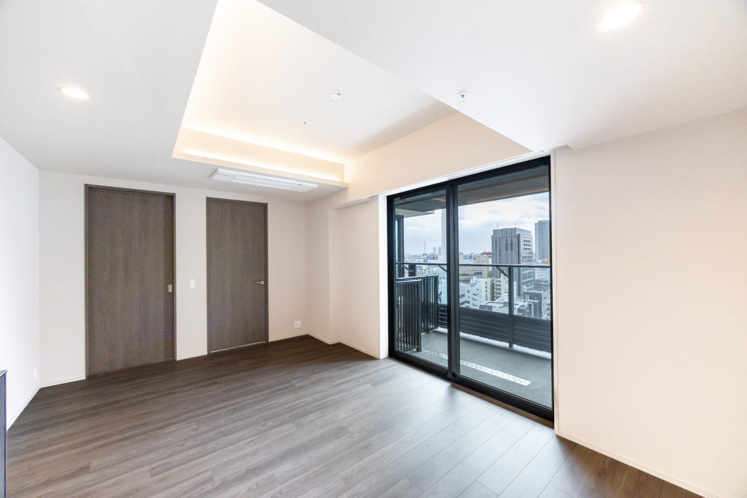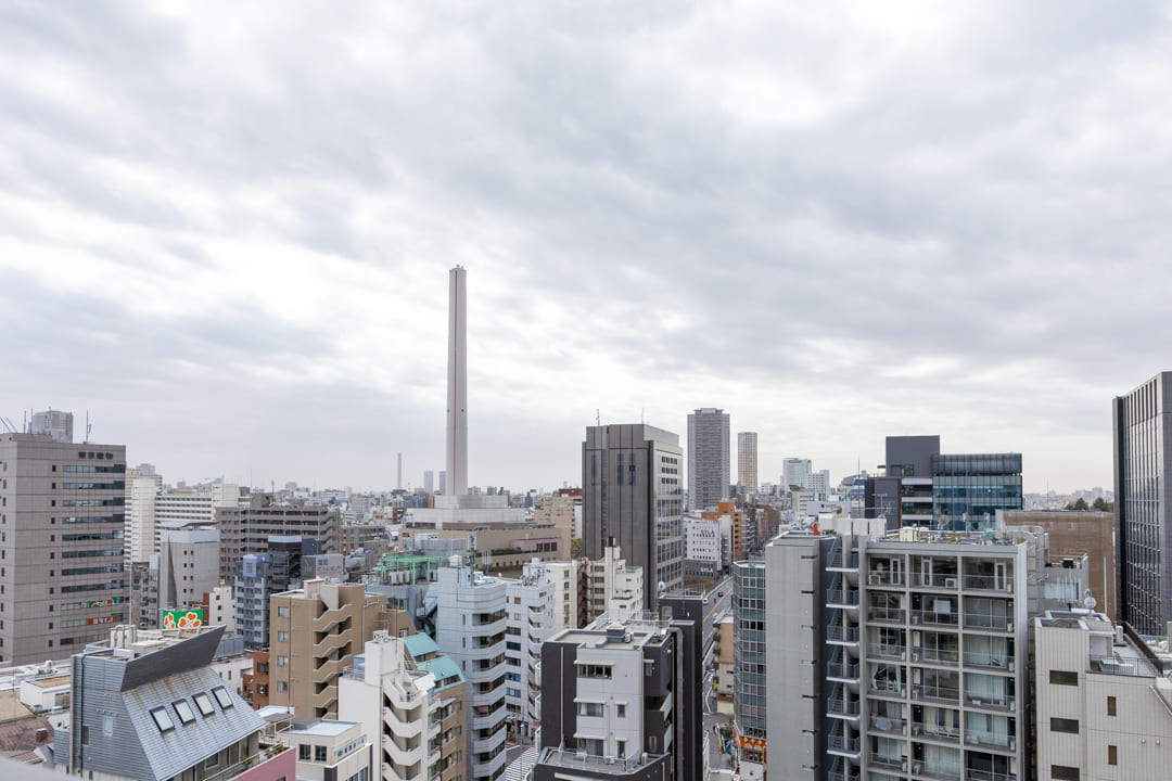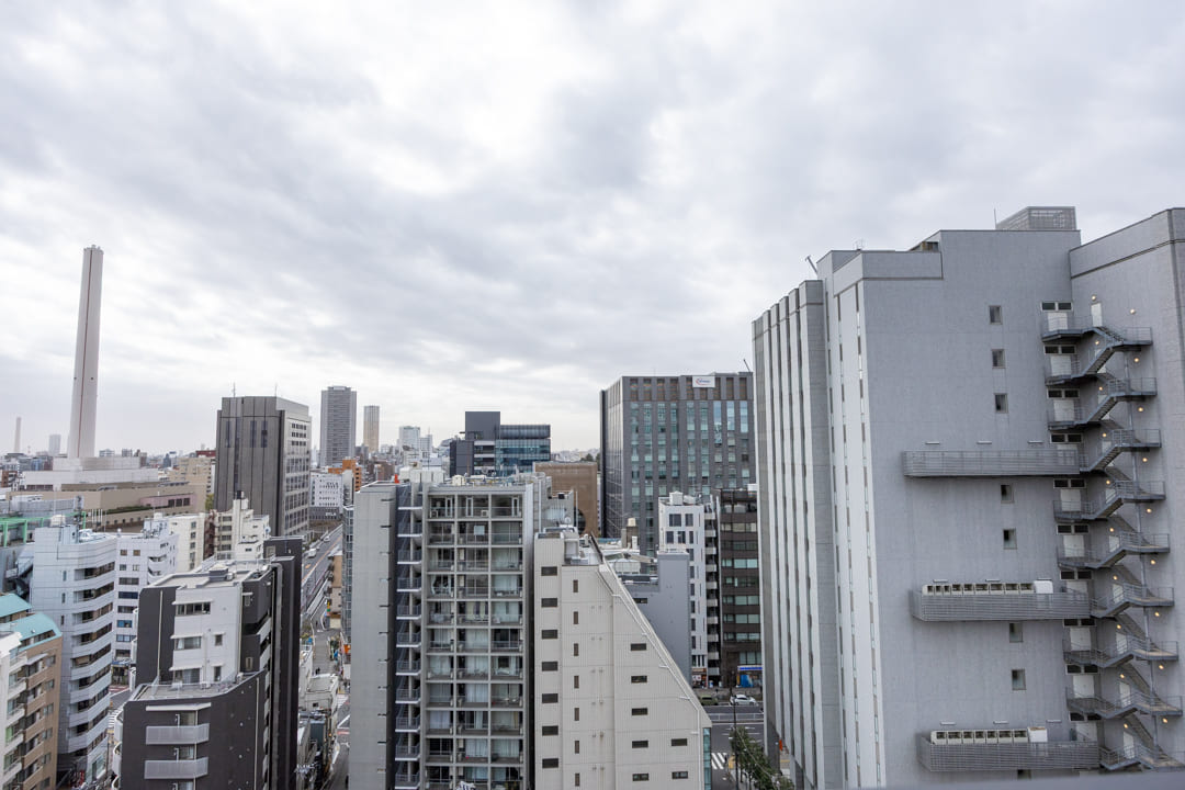 約7.5㎡のバルコニーは、南西向きのため日当たりが良好です。リビングダイニングからだけでなく、寝室1からも出入りができる便利な動線。チェアなどを置いて気分転換にもぴったりな空間となっています。また、12階部分のため目の前には渋谷・代官山方面の開放的な眺望が広がります。空を近くに感じる伸びやかな眺めを楽しめますよ。