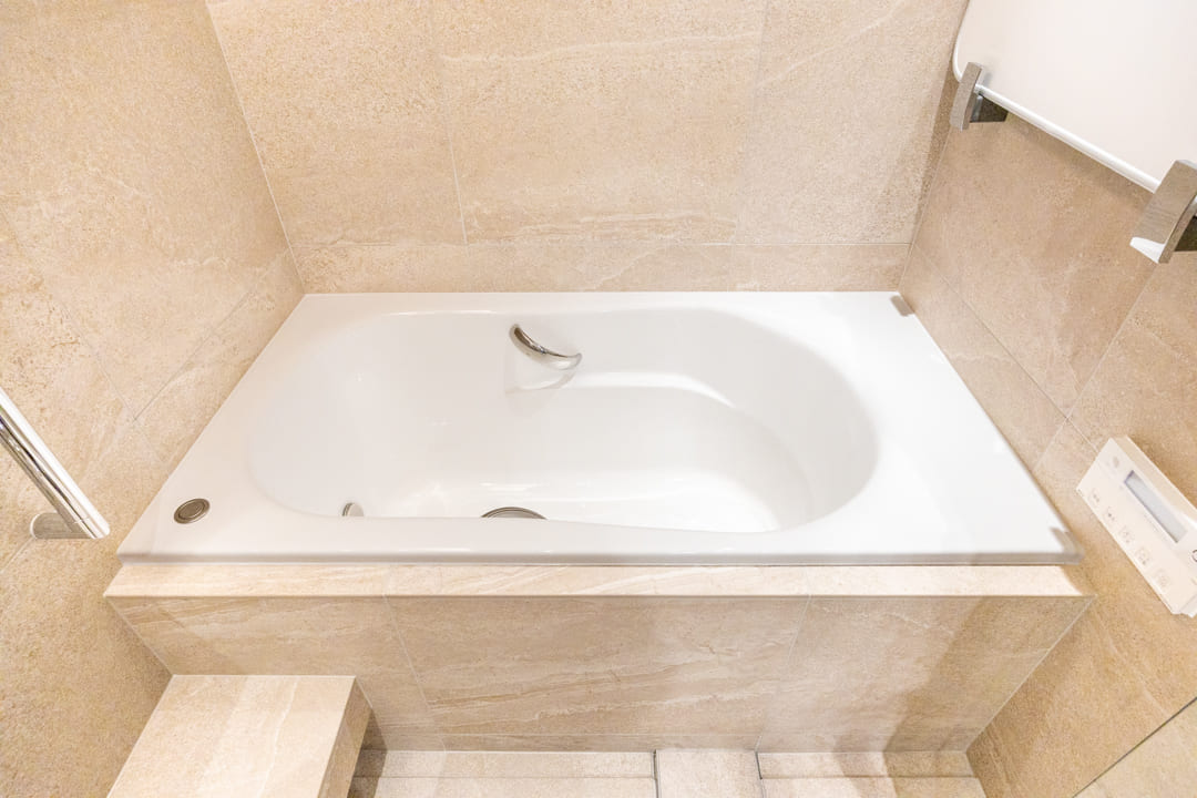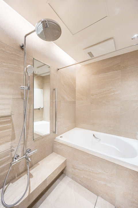オーバーヘッドシャワーが付いているのでたっぷりと全身で湯を浴びることができます。リラックス効果や保温効果もあって◎。