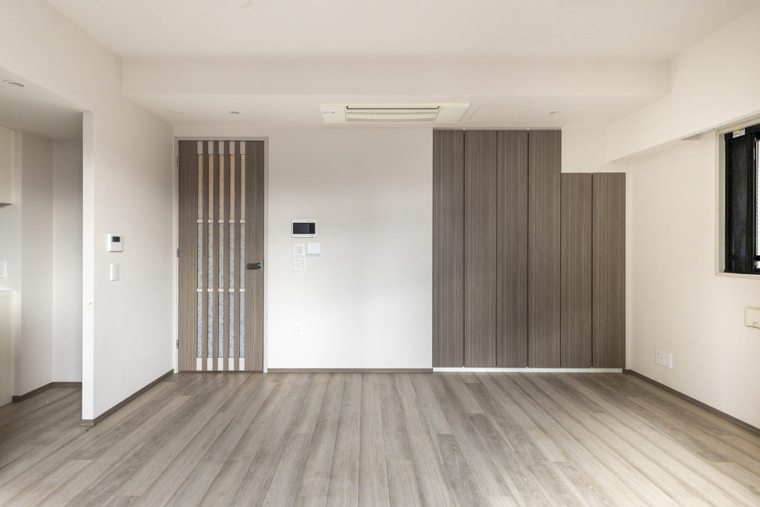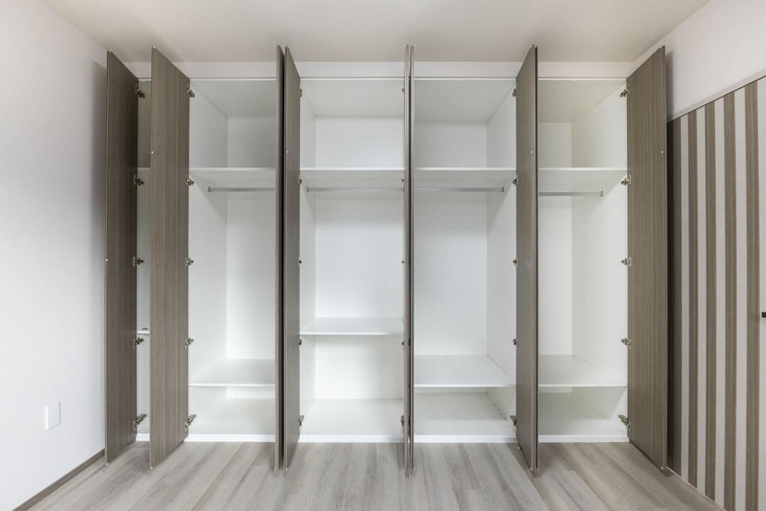 収納力のあるクローゼットが備え付けなのも嬉しいポイント。扉を閉めれば生活感をしっかり目隠しでき、すっきりとしたリビング空間を実現できそうです。