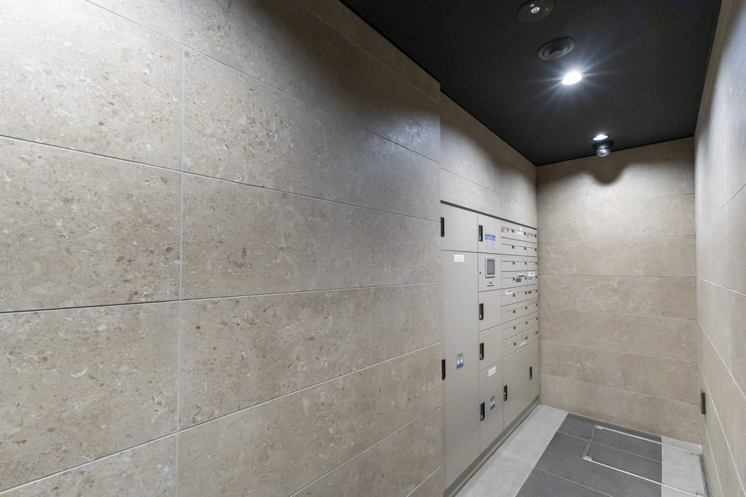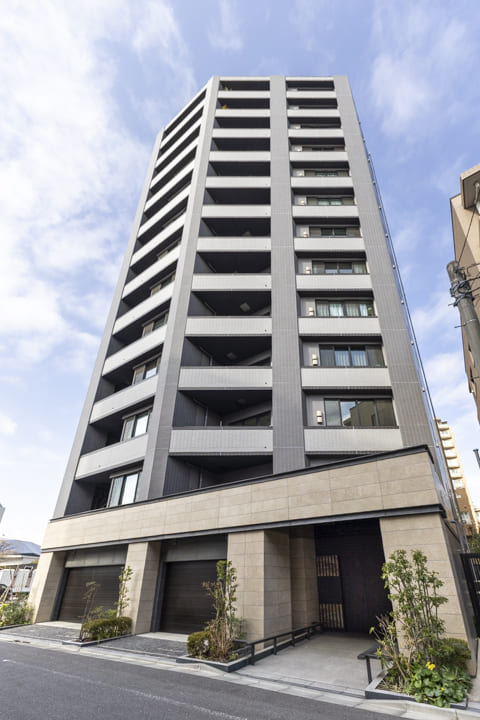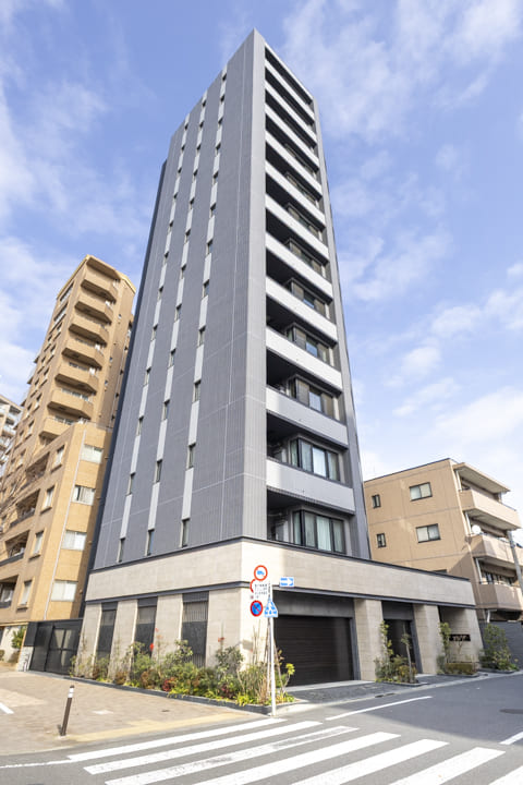 タイル貼りのスタイリッシュな外観が印象的なこちらのマンション。2020年(令和2年)1月竣工の13階建、総戸数は25戸です。モニター付オートロック・防犯カメラ完備でセキュリティ面は安心。不在時に重宝する宅配ボックスを完備、24時間ゴミ出し可能なのも嬉しいポイントです。各住戸に2台分のサイクルガレージがあり、敷地内には駐車場&バイク置き場も完備しています。空き状況は変動するのでお問い合わせください。細則はありますが、ペットの飼育が可能で、ペット用の足洗い場も完備されています。