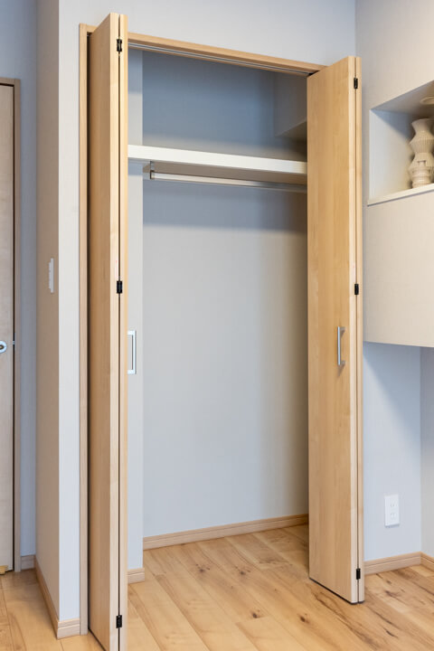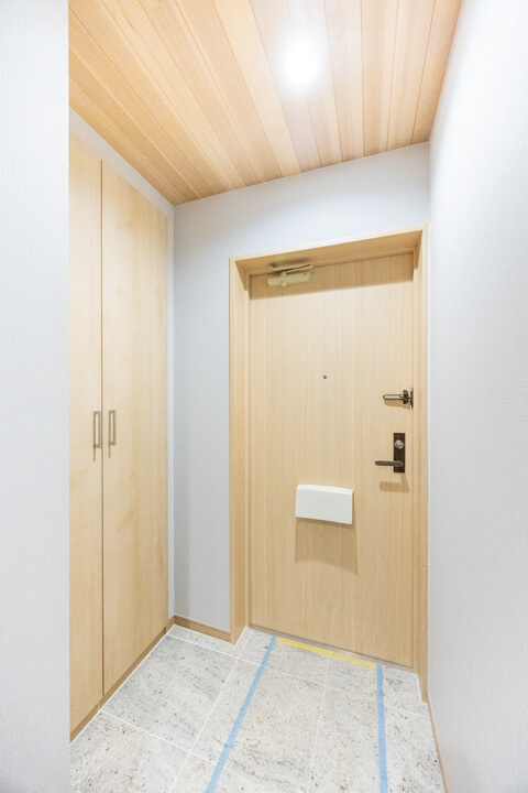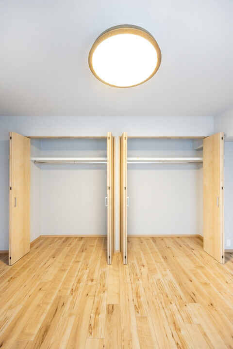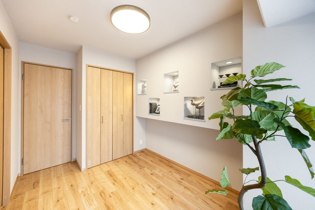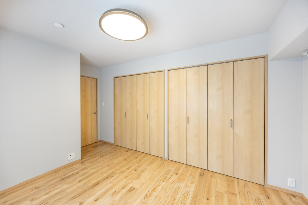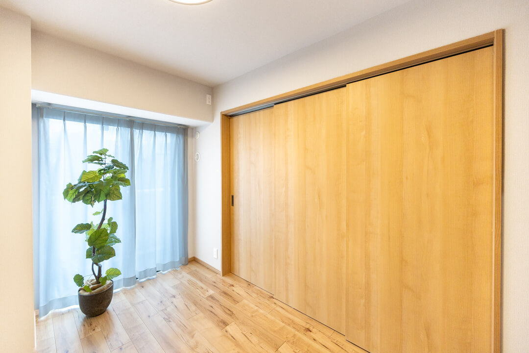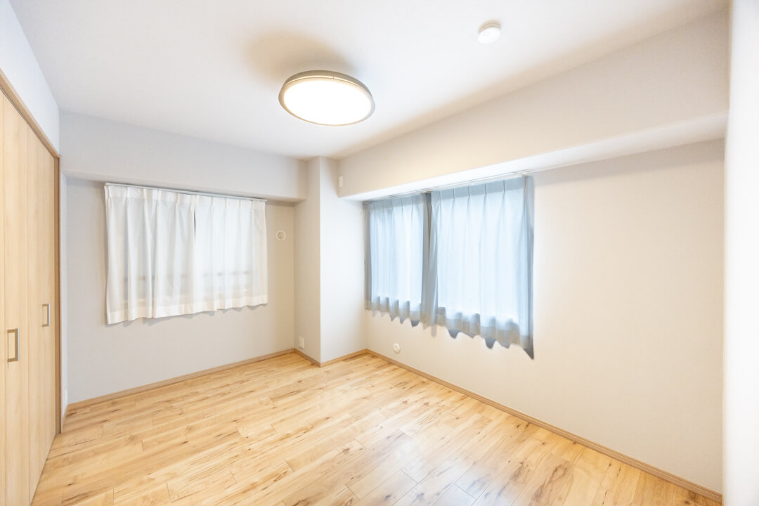 約6.9帖の洋室。廊下に面した独立性の高いお部屋で、自分時間をゆっくりと過ごせます。二面採光で通風良好。大容量のシューズボックスも備わっています。