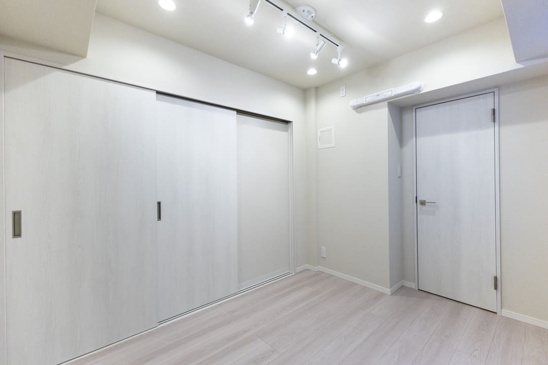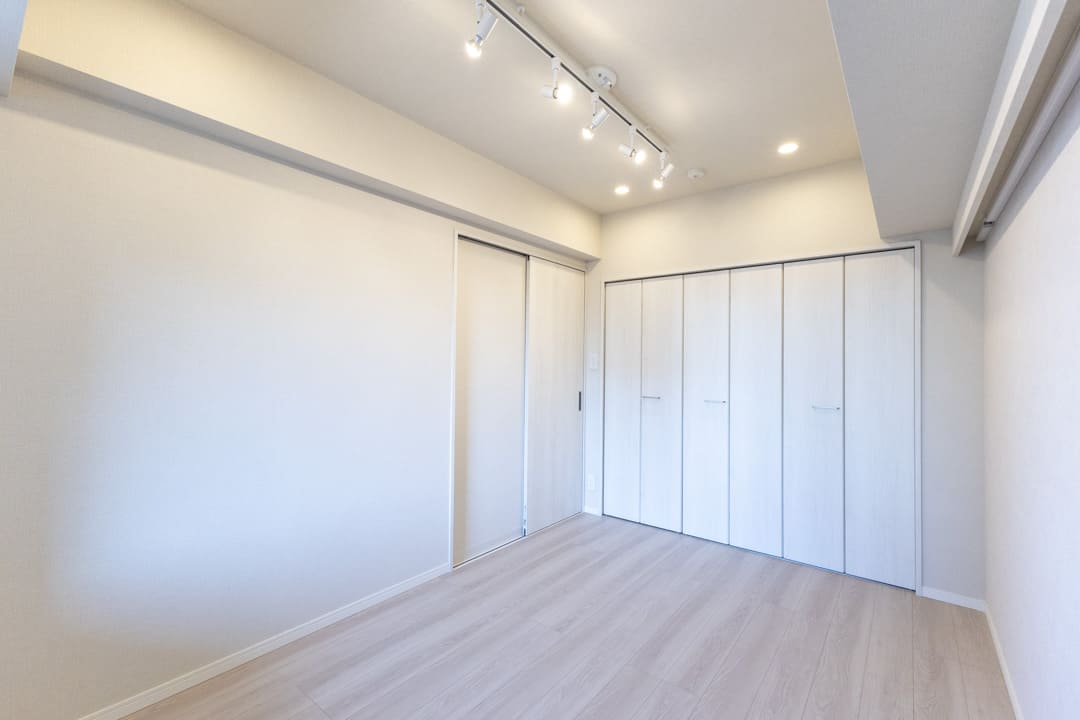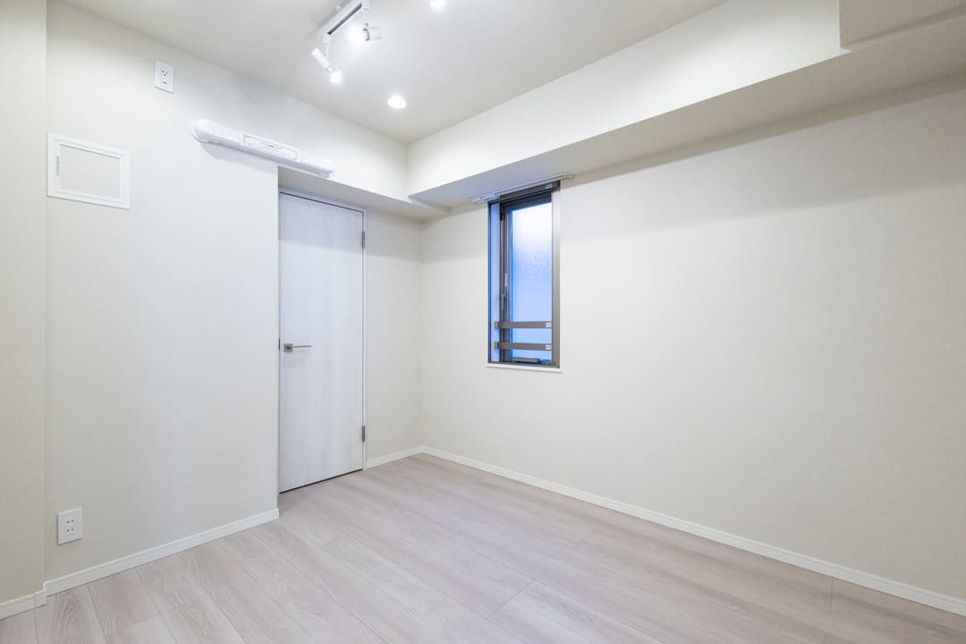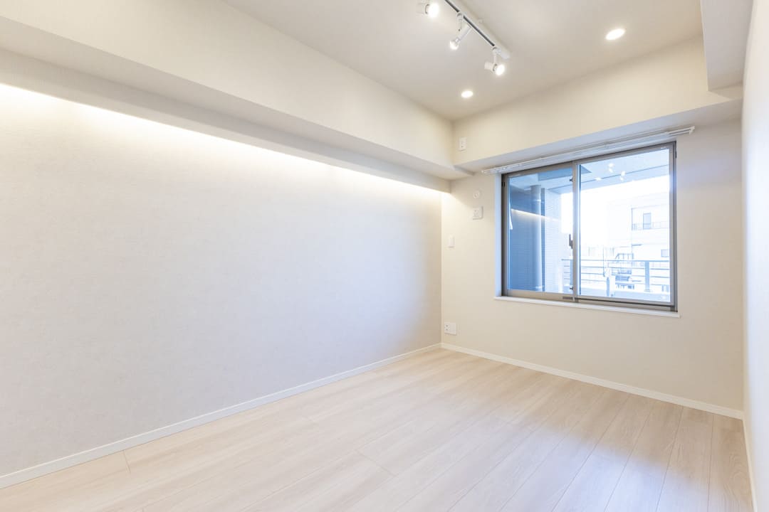 約5.9帖の洋室1。南西向きの窓から明るい自然光が届きます。間接照明のやわらかな明かりが気持ちを落ち着かせ、リラックスタイムへ誘ってくれそうですね。主寝室にぴったりの空間です。