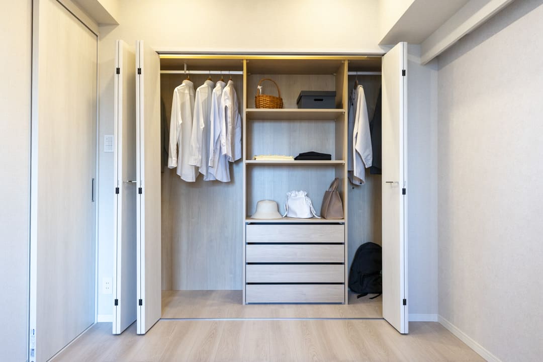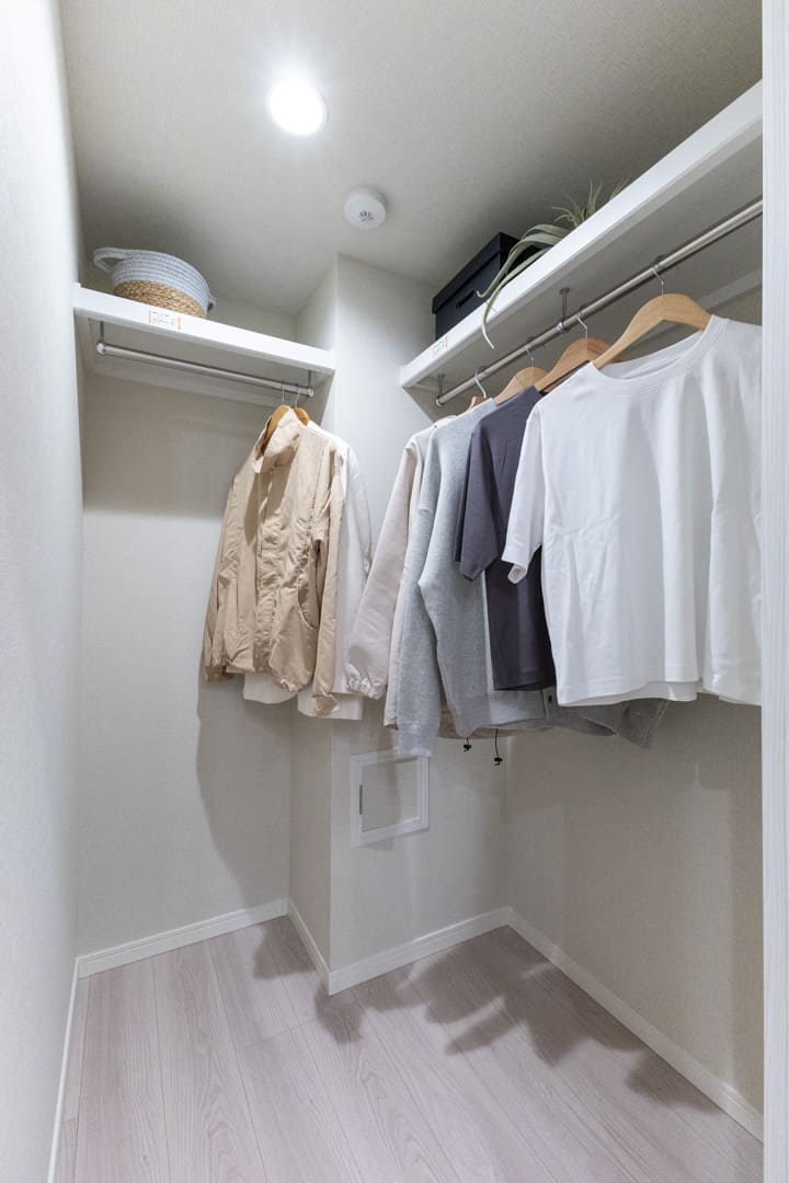 WIC(ウォークインクローゼット)完備で収納力◎。衣類はもちろん、トランクケースやゴルフバッグといった大きな荷物も収納でき、居室空間を有効活用できます。